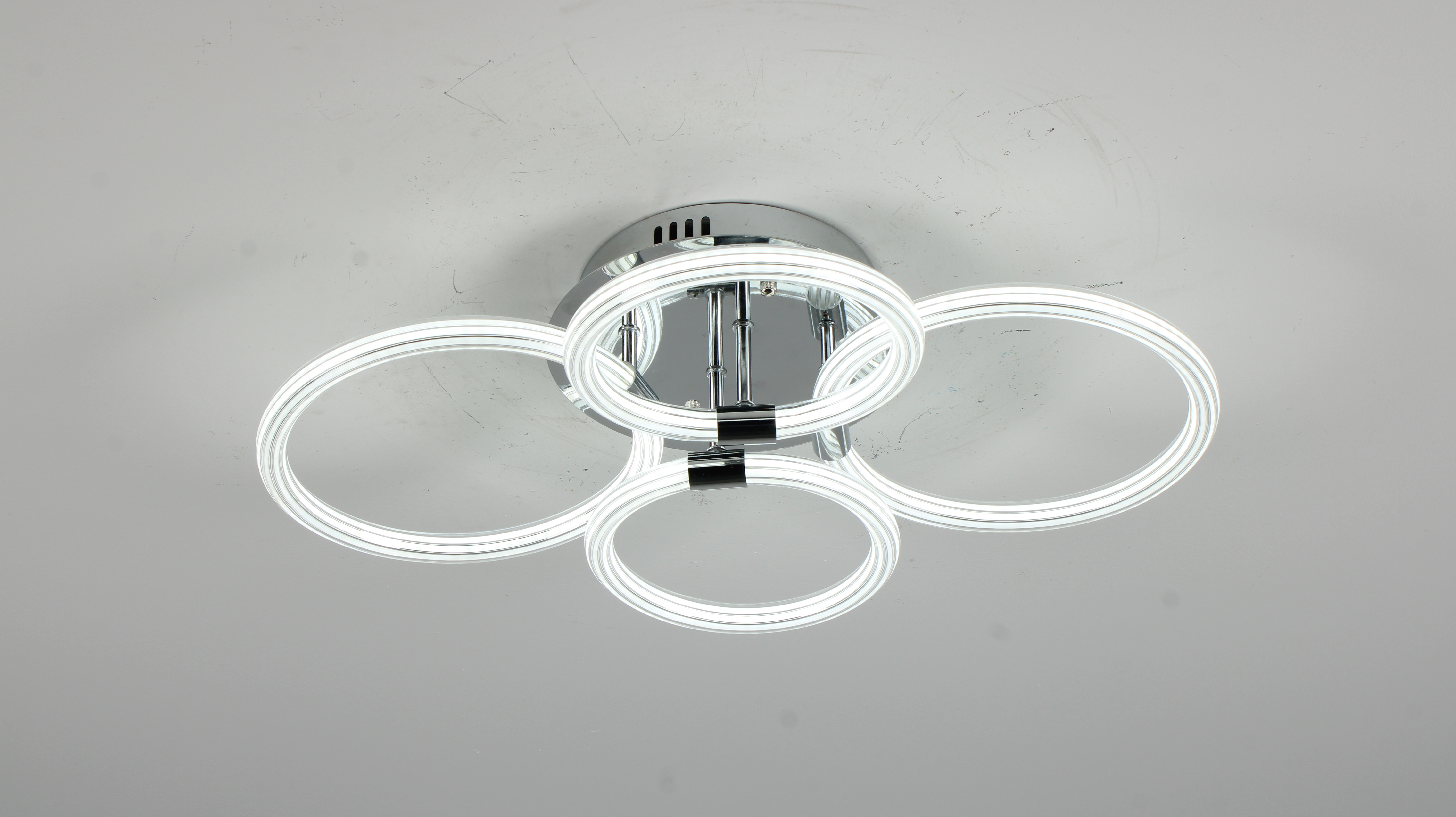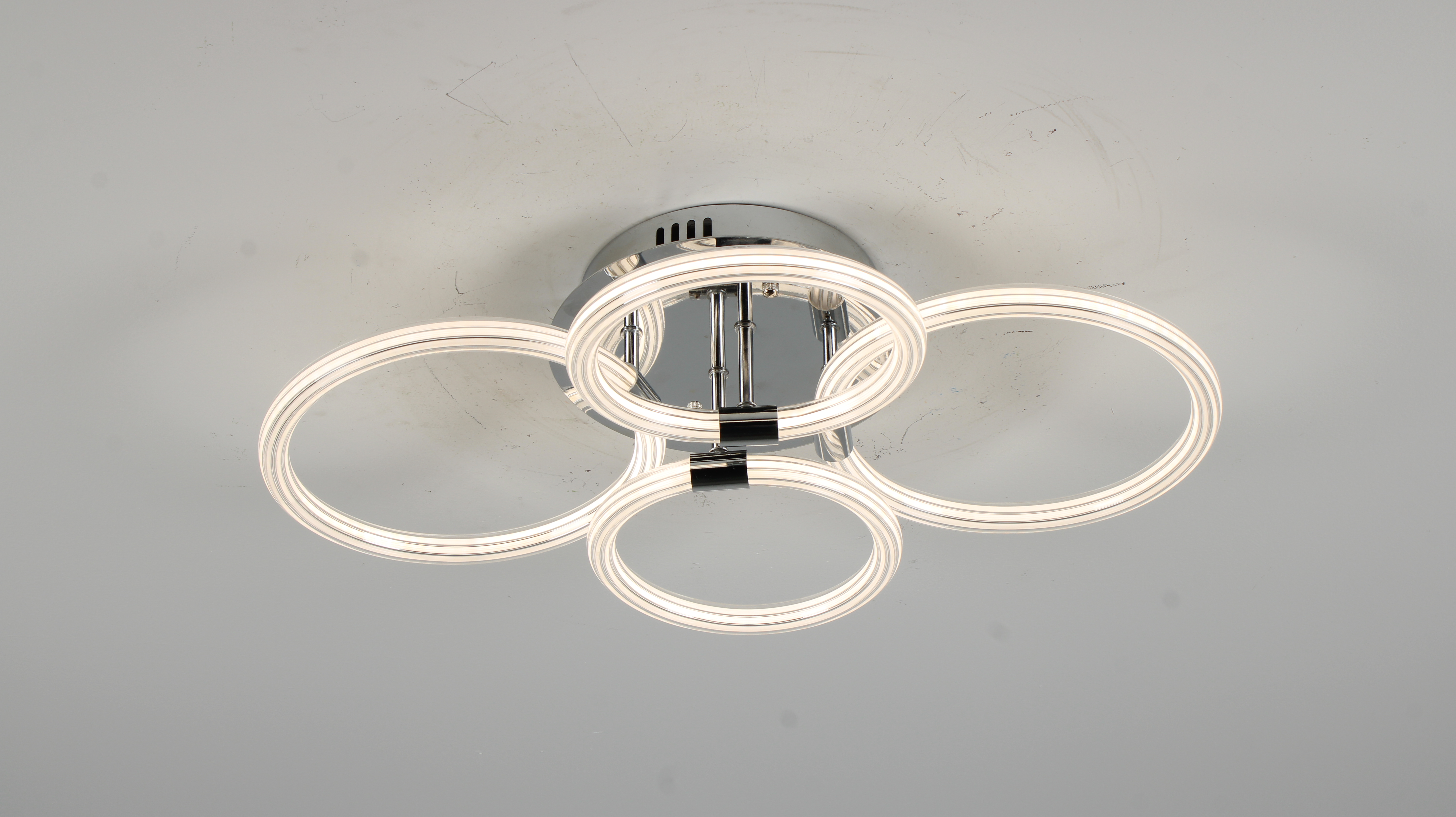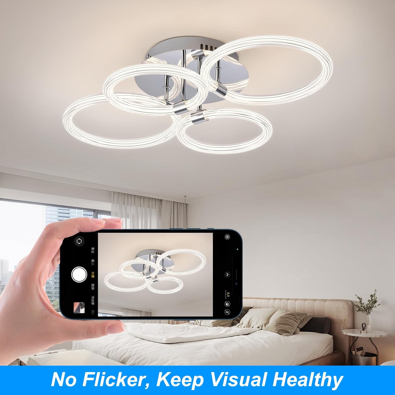 Modern LED Ceiling Light, Flush Mount Ceiling Light with Dimmable Remote Control, 6Rings Acrylic Ceiling Light Fixture for Bedroom, Living Room, Kitchen, Office Lamps (4 heads)