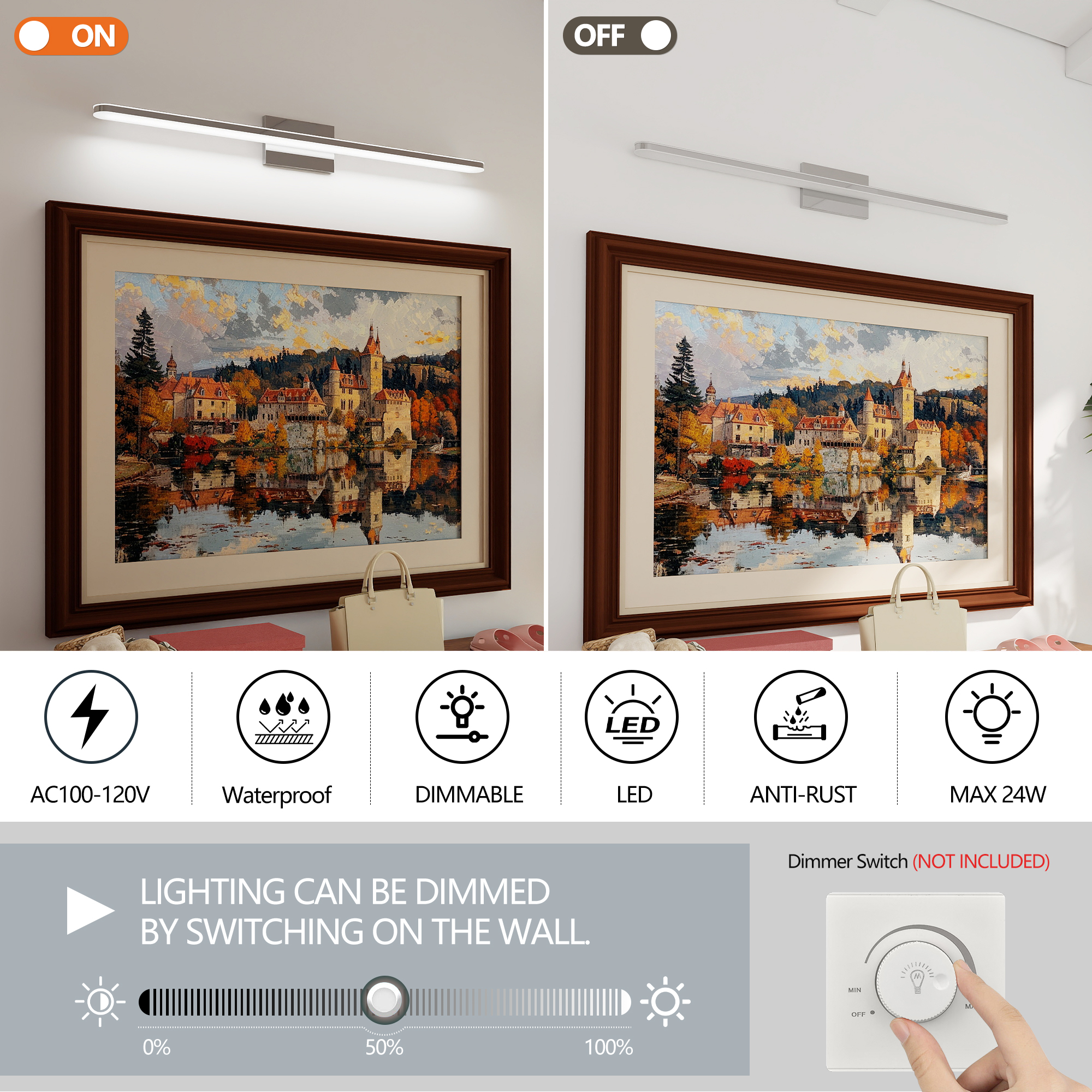 NEOSGO Modern LED Vanity Lights for Bathroom 39IN 24W Daylight White Chrome Light Fixtures Bathroom Lights Over Mirror Vanity Lighting Fixtures Vanity Light is designed to improve daily bathroom routines with a clearer mirror area and more useful lighting around the vanity space. The product presentation suggests a modern wall-mounted mirror intended for grooming, makeup, skincare, shaving, and other tasks that benefit from more even front-facing light. It works especially well in bathrooms, powder rooms, and remodeled vanity areas where customers want the mirror to provide both practical function and a cleaner visual upgrade. This type of mirror is a strong fit for shoppers looking to make the room feel brighter, more modern, and easier to use every day. Overall size is approximately 41.34 x 6.3 x 5.51 inches with a listed weight of 4.3. The current listing includes 8 product images, which help clarify the product shape, proportions, and visual placement in a real room setting.