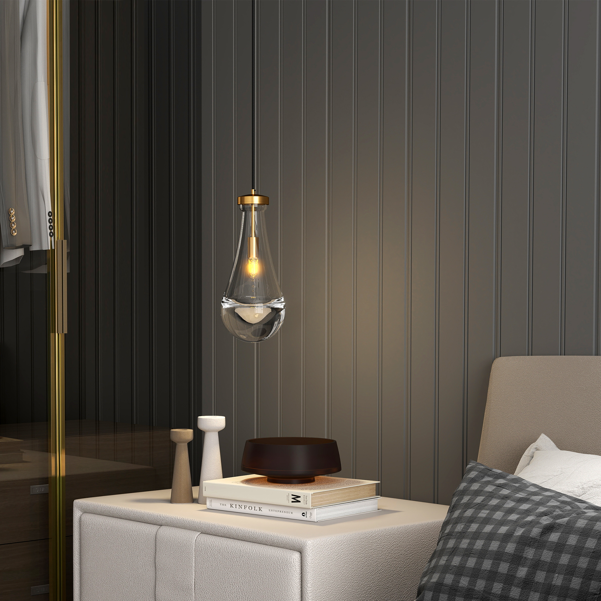 NEOSGO Modern Raindrop Pendant Lights, Pendant Lights for Kitchen Island, Brass Rod Dining Room Light Fixture, Clear Solid Raindrop Chandelier, Chandelier for Living Room Hallway,Not including Bulb is designed to serve as both a lighting source and a decorative focal point within the room. This type of fixture is especially effective above dining tables, in entryways, and in living spaces where the customer wants overhead light with stronger visual impact. The product presentation suggests a style-driven fixture that helps define the ceiling area and gives the space a more elevated, finished character. It is a strong fit for customers who want lighting that contributes to the overall look of the room rather than functioning as a utility piece alone. Overall size is approximately 13.8 x 9.4 x 7.3 inches with a listed weight of 6.5. The current listing includes 12 product images, which help clarify the product shape, proportions, and visual placement in a real room setting.