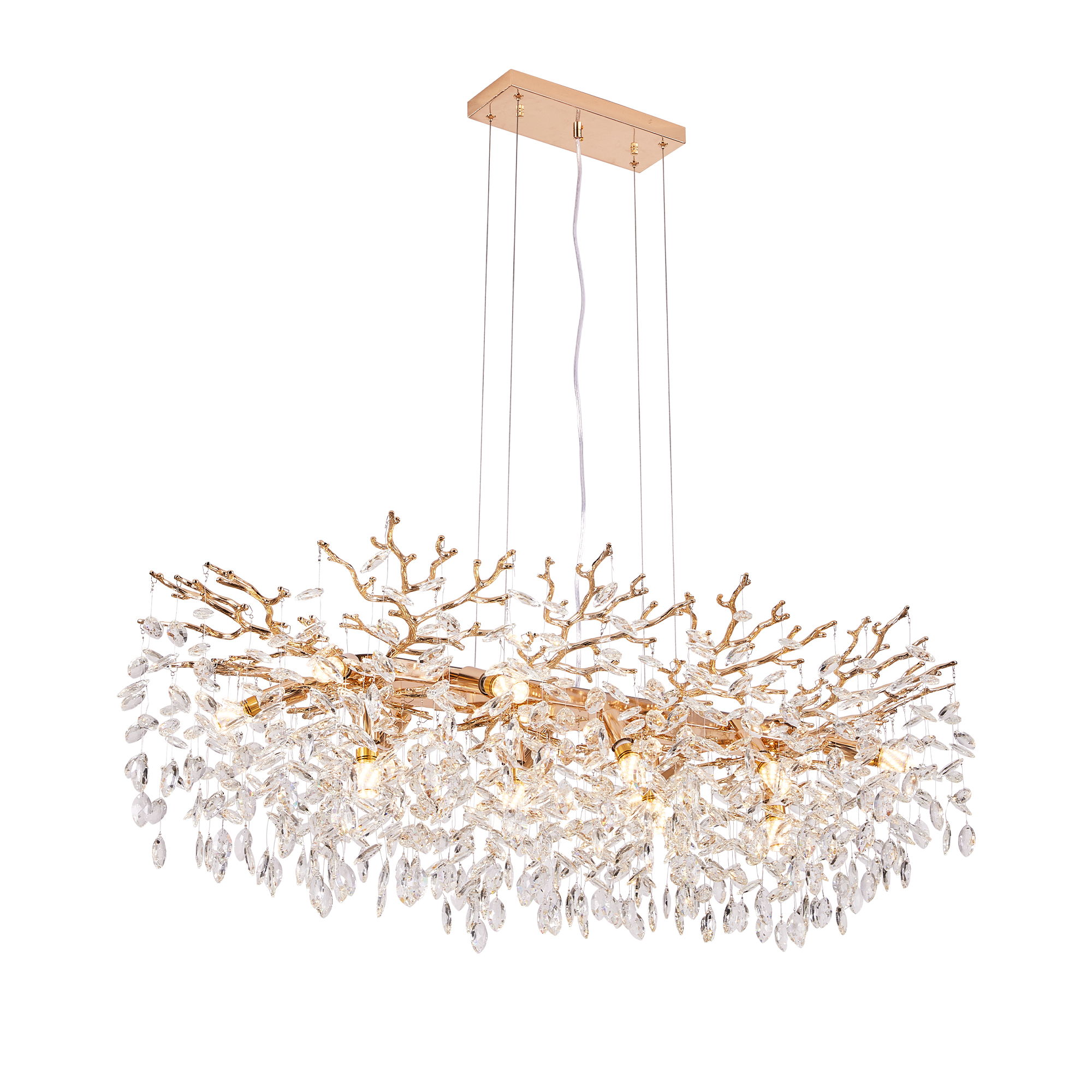 Modern Rectangular Chandelier, 49.2" Gold Crystal Tree Branch Chandelier 14 Lights Luxury Raindrop Light for Dining Room, Kitchen Island, Living Room