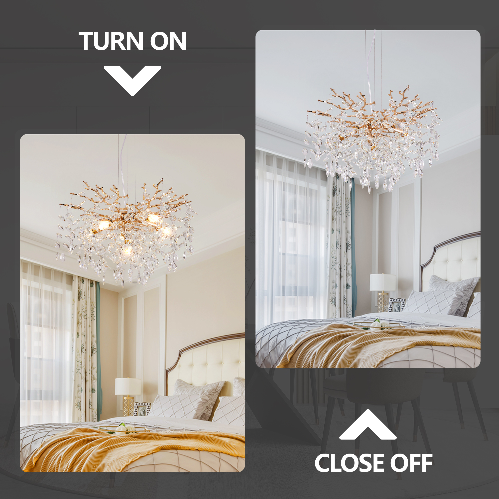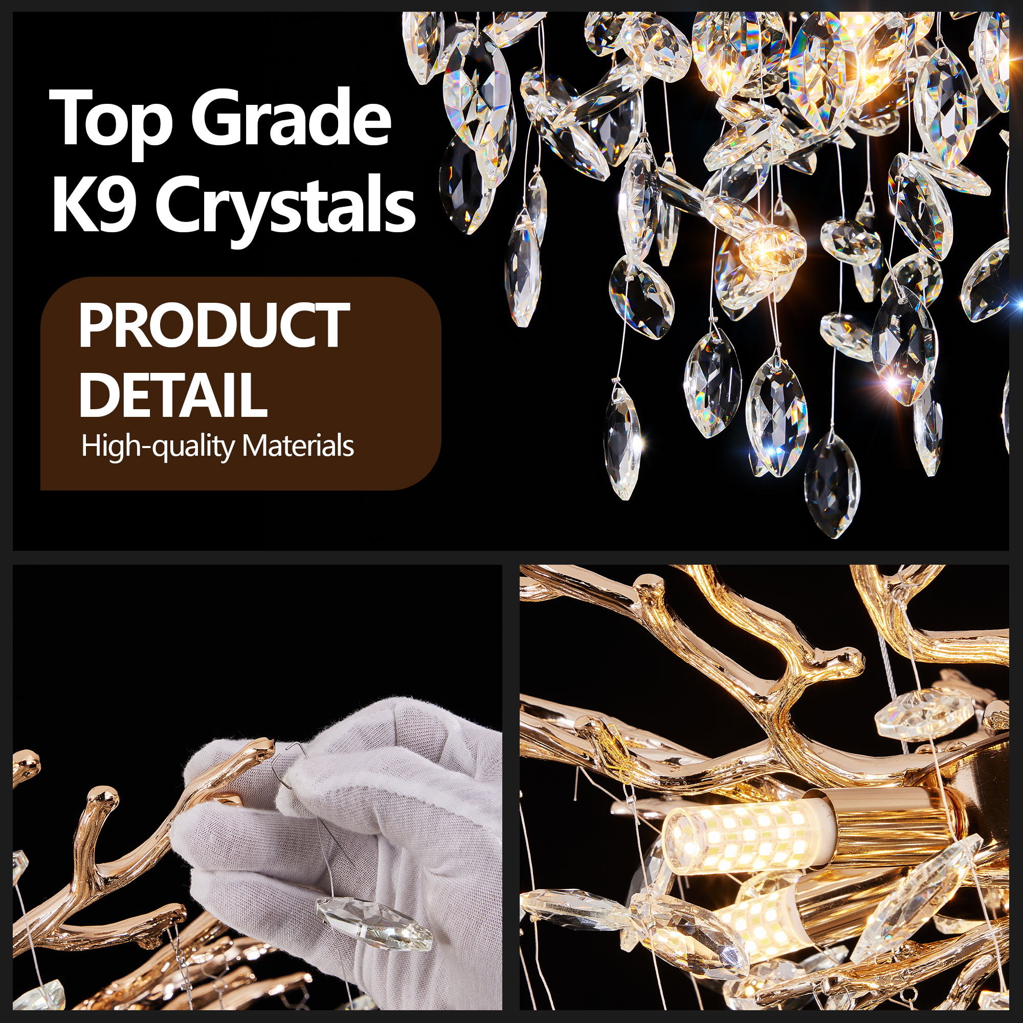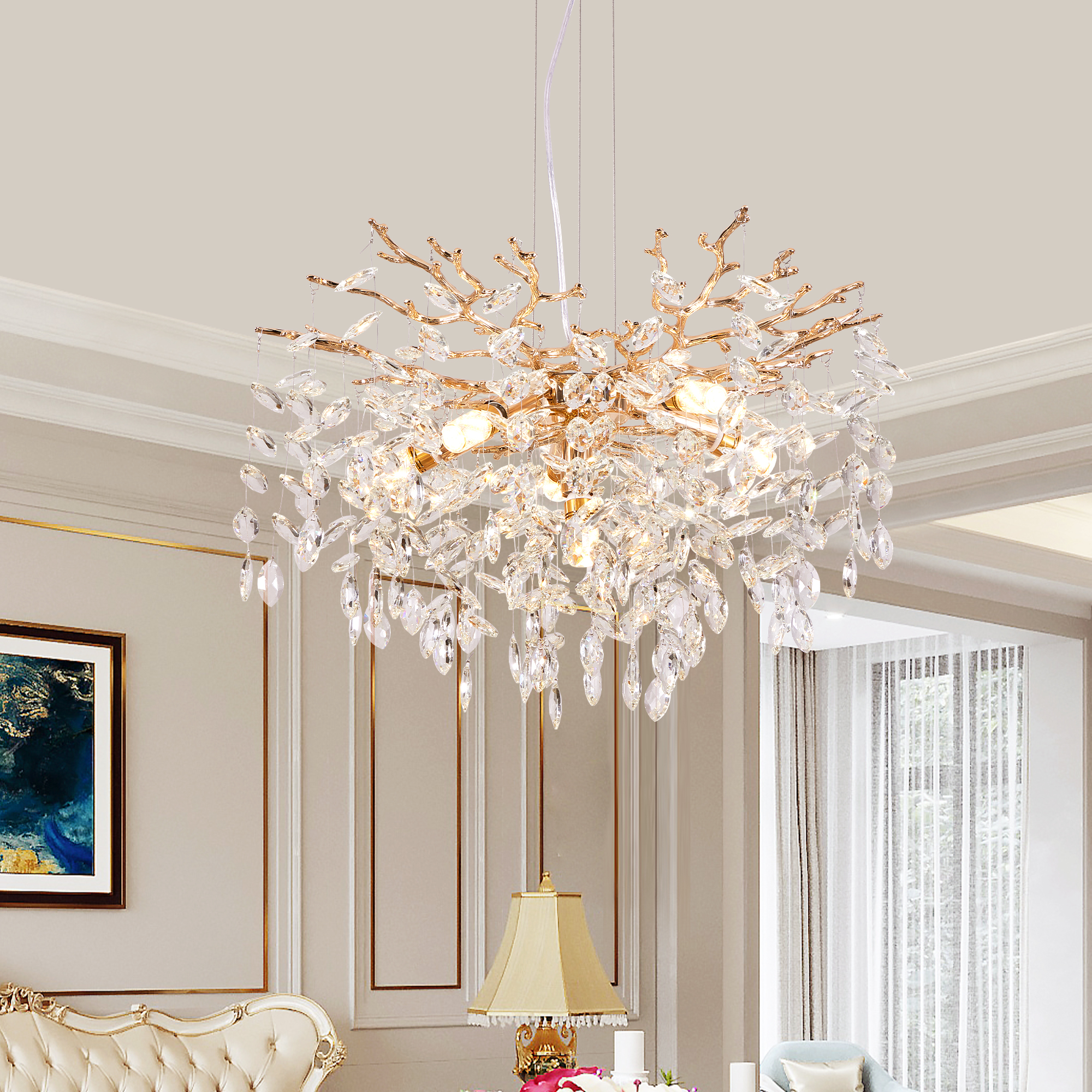 NEOSGO Modern Tree Branch Crystal Chandelier Luxury Gold Crystal Pendant Lighting 23.6" Contemporary 6-Light Chandeliers for Dining Room Kitchen Bedroom Living Room is designed to serve as both a lighting source and a decorative focal point within the room. This type of fixture is especially effective above dining tables, in entryways, and in living spaces where the customer wants overhead light with stronger visual impact. The product presentation suggests a style-driven fixture that helps define the ceiling area and gives the space a more elevated, finished character. It is a strong fit for customers who want lighting that contributes to the overall look of the room rather than functioning as a utility piece alone. Overall size is approximately 18.9 x 15.7 x 7.9 inches with a listed weight of 17.1. The current listing includes 9 product images, which help clarify the product shape, proportions, and visual placement in a real room setting.