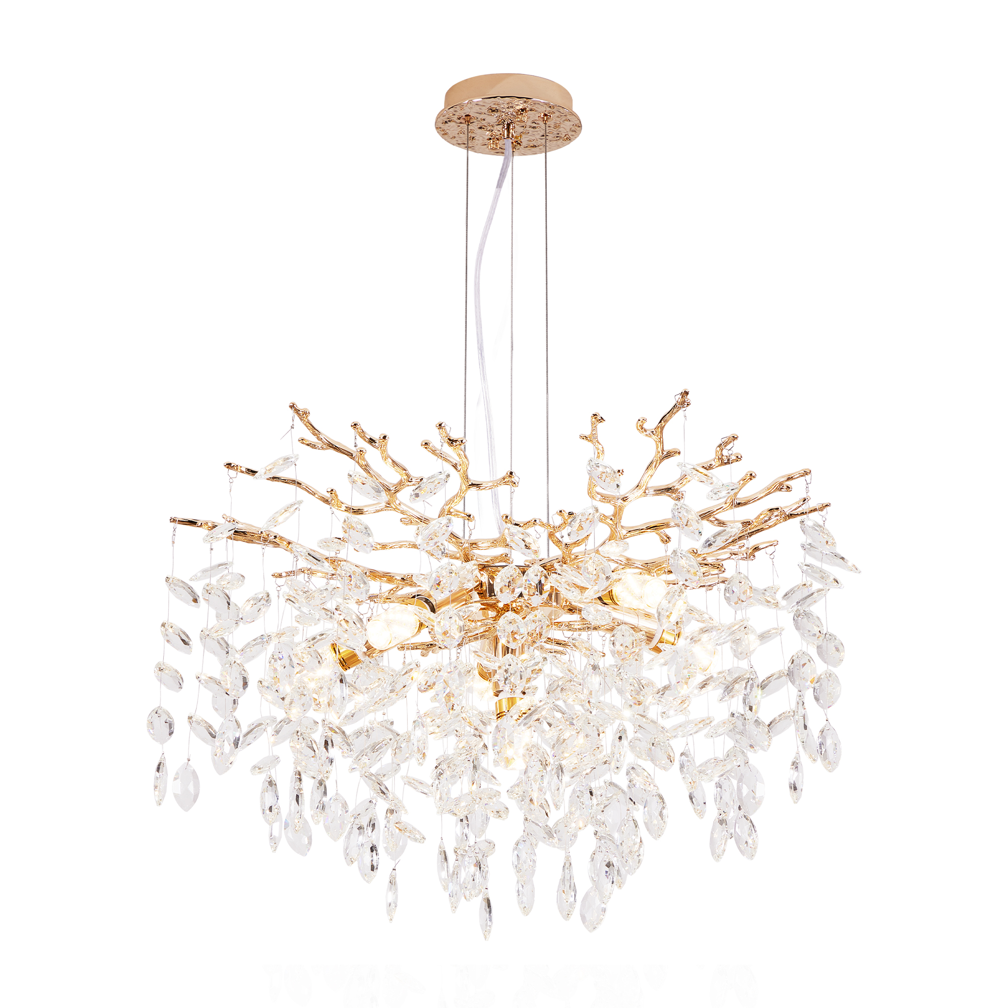 Modern Tree Branch Crystal Chandelier Luxury Gold Crystal Pendant Lighting 23.6" Contemporary 6-Light Chandeliers for Dining Room Kitchen Bedroom Living Room