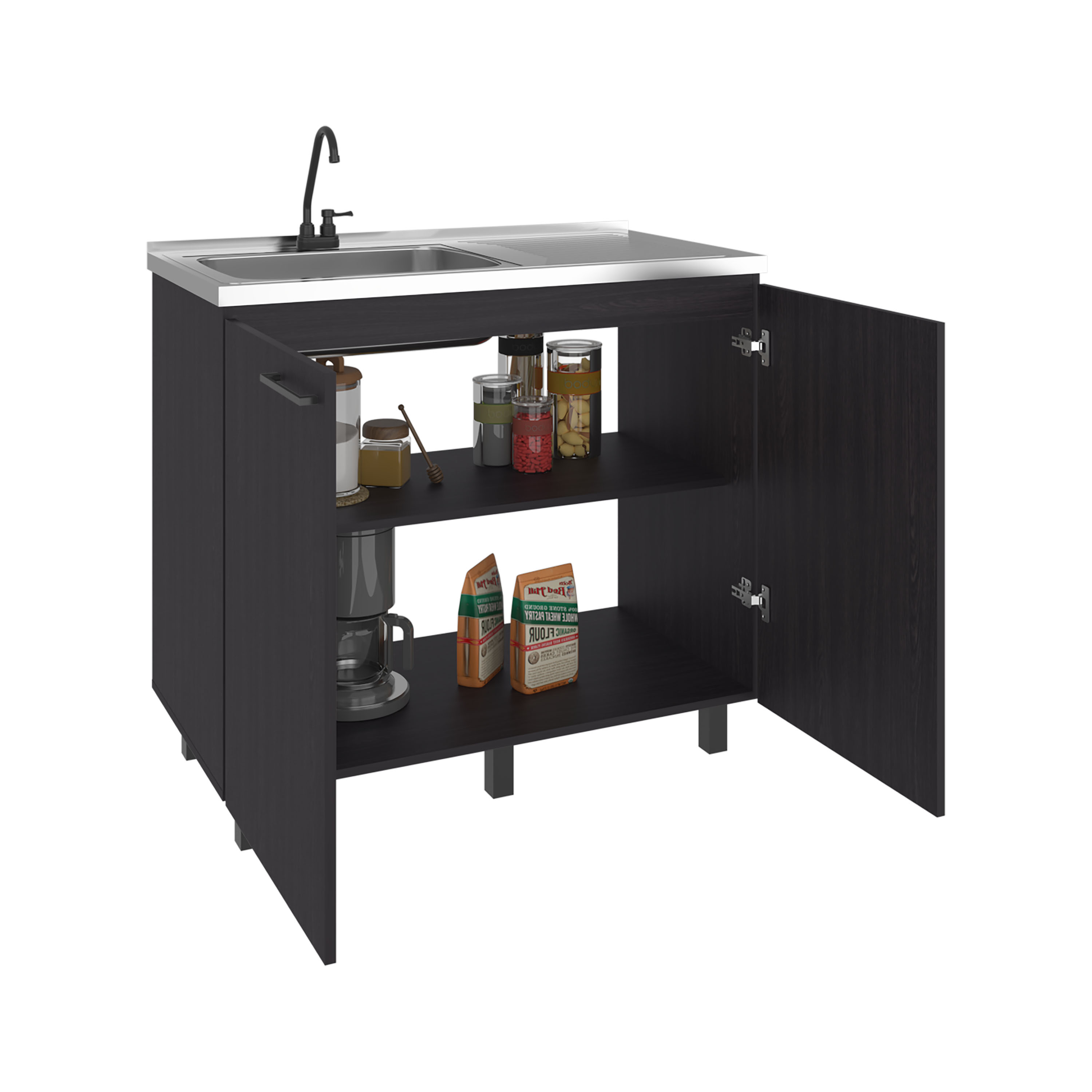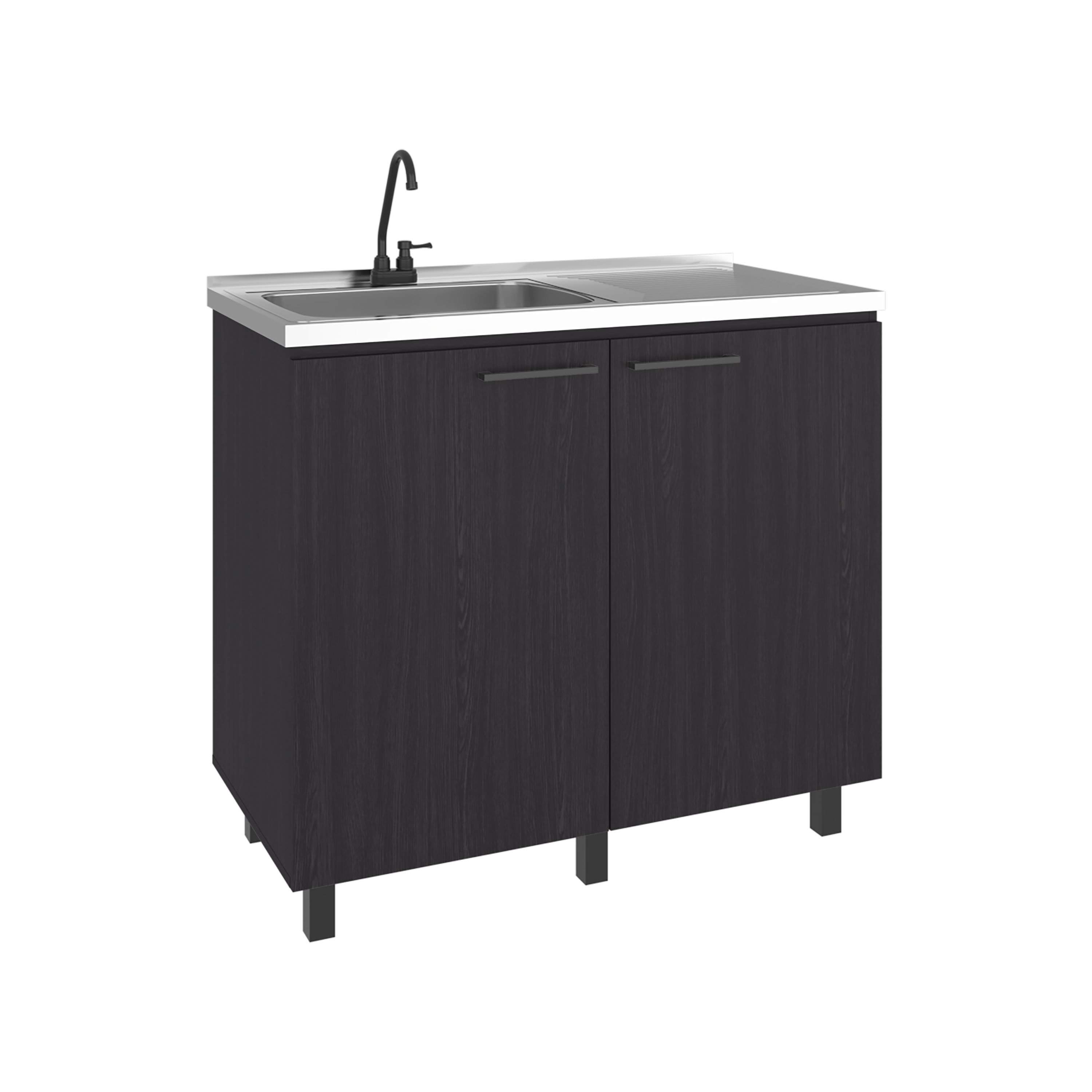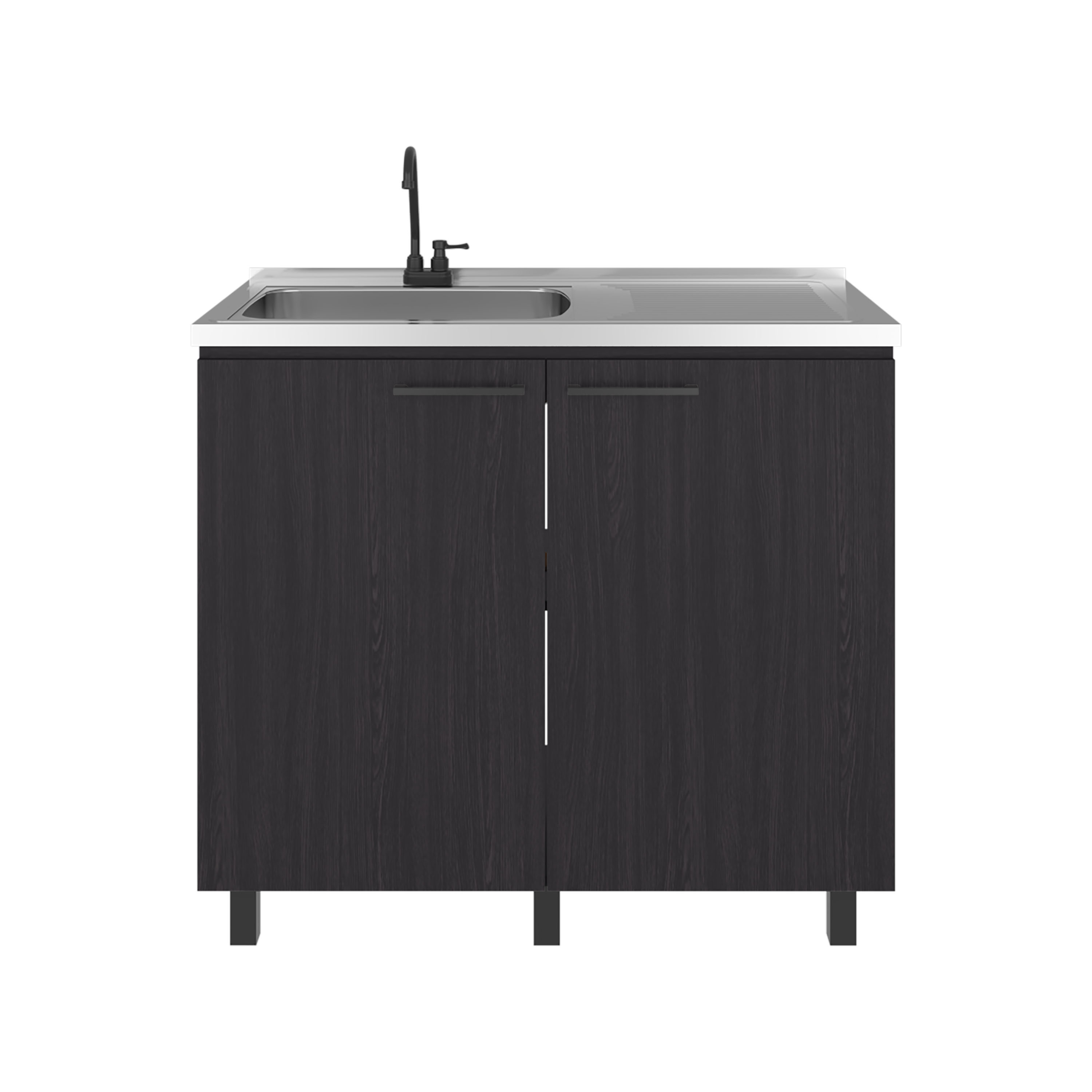 Napoles Utility Sink with Faucet Inclued and Integrated Stainless Steel Counter top, Freestanding cabinet with two doors, Metal Handles and Two interior shelves, Light Espresso