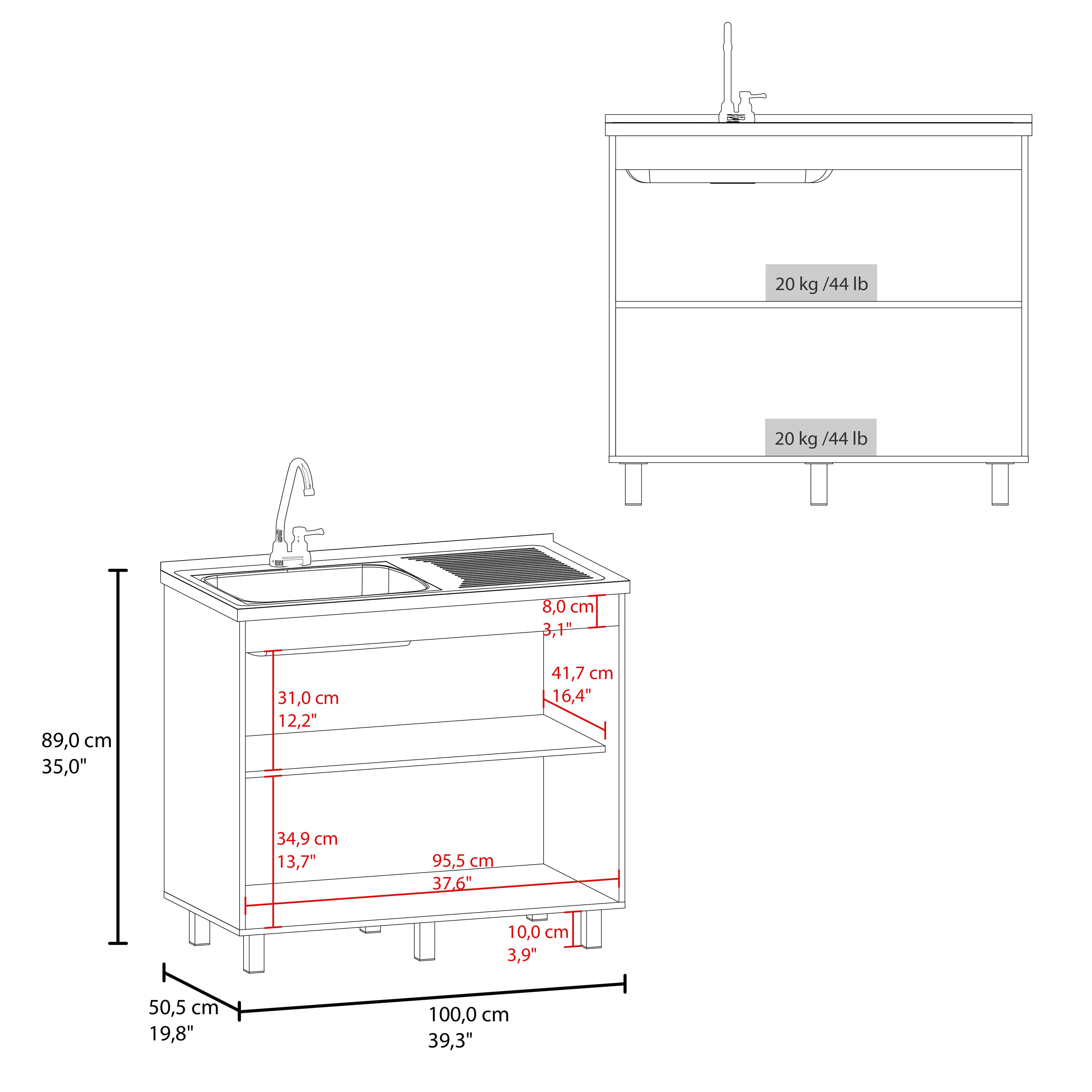 Napoles Utility Sink with Faucet Inclued and Integrated Stainless Steel Counter top, Freestanding cabinet with two doors, Metal Handles and Two interior shelves, White
