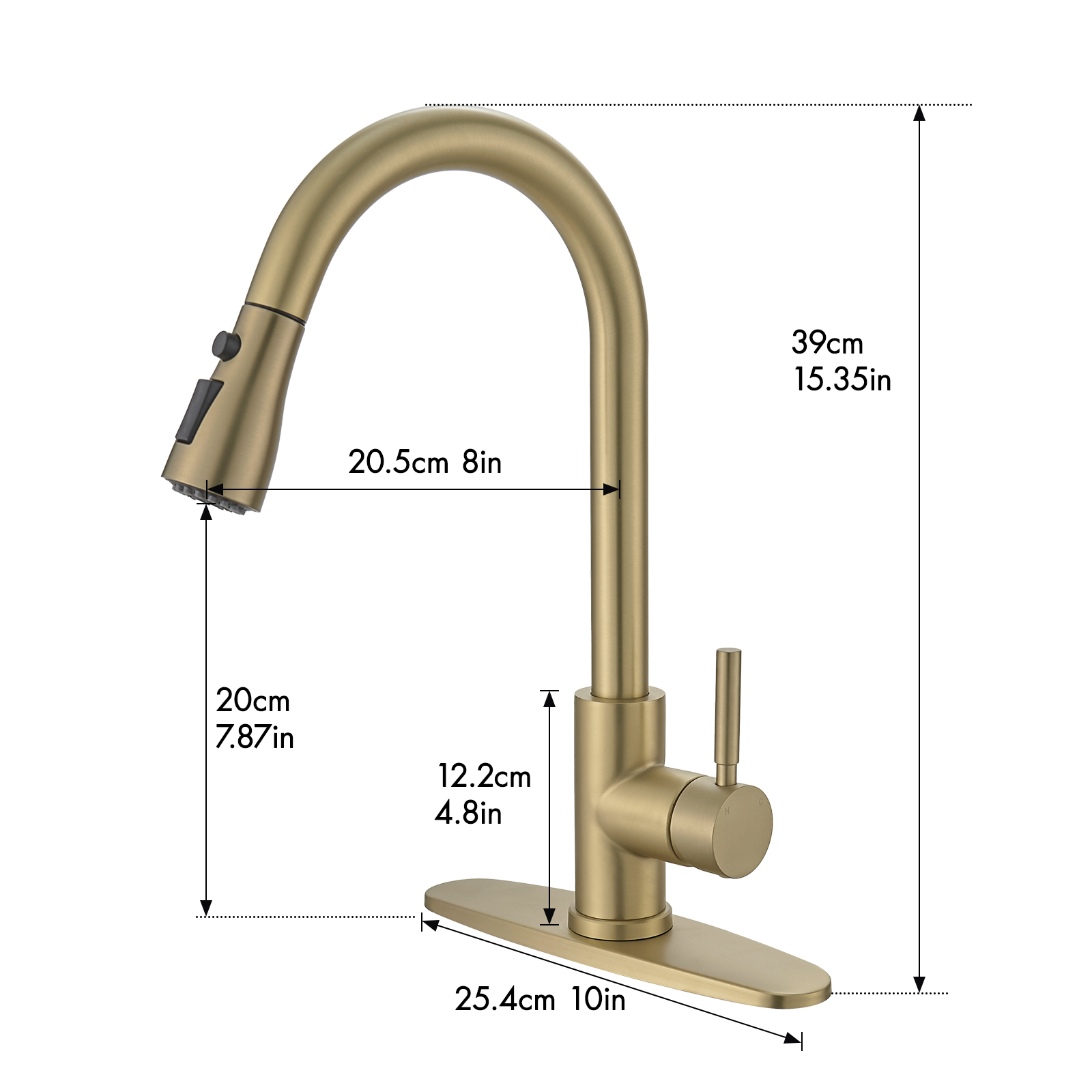 FLG Nickel Gold Kitchen Sink Faucet with Deck Plate Kitchen Faucets with Pull out Sprayer Single Handle Kitchen Faucet. Designed as a practical decorative lighting piece that supports everyday use while helping complete the look of the space. Material: Stainless Steel. Product dimensions and weight: length 17.1, width 13.4, height 2.2, weight 3.9.