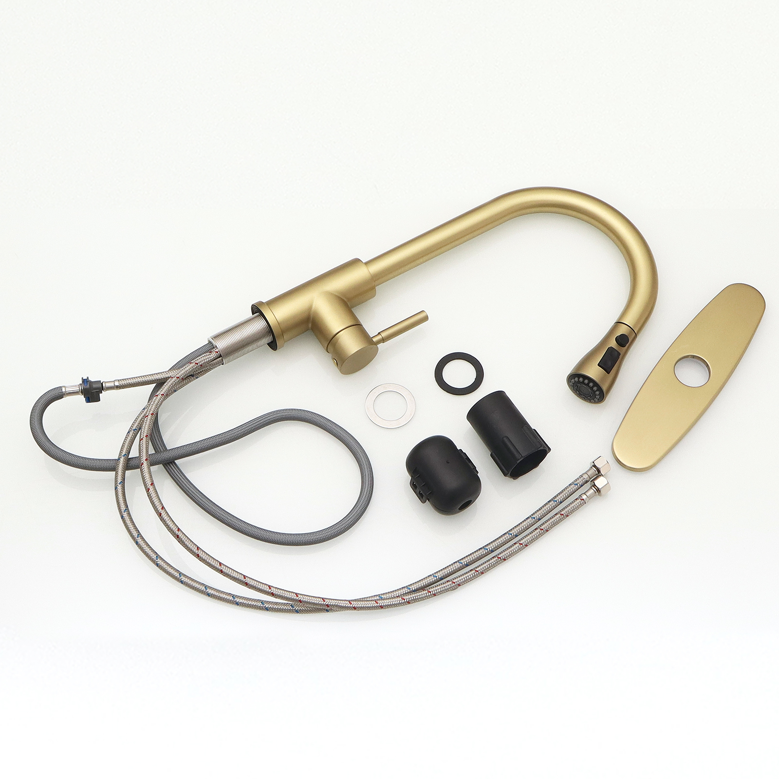 Nickel Gold Kitchen Sink Faucet with Deck Plate Kitchen Faucets with Pull out Sprayer Single Handle Kitchen Faucet