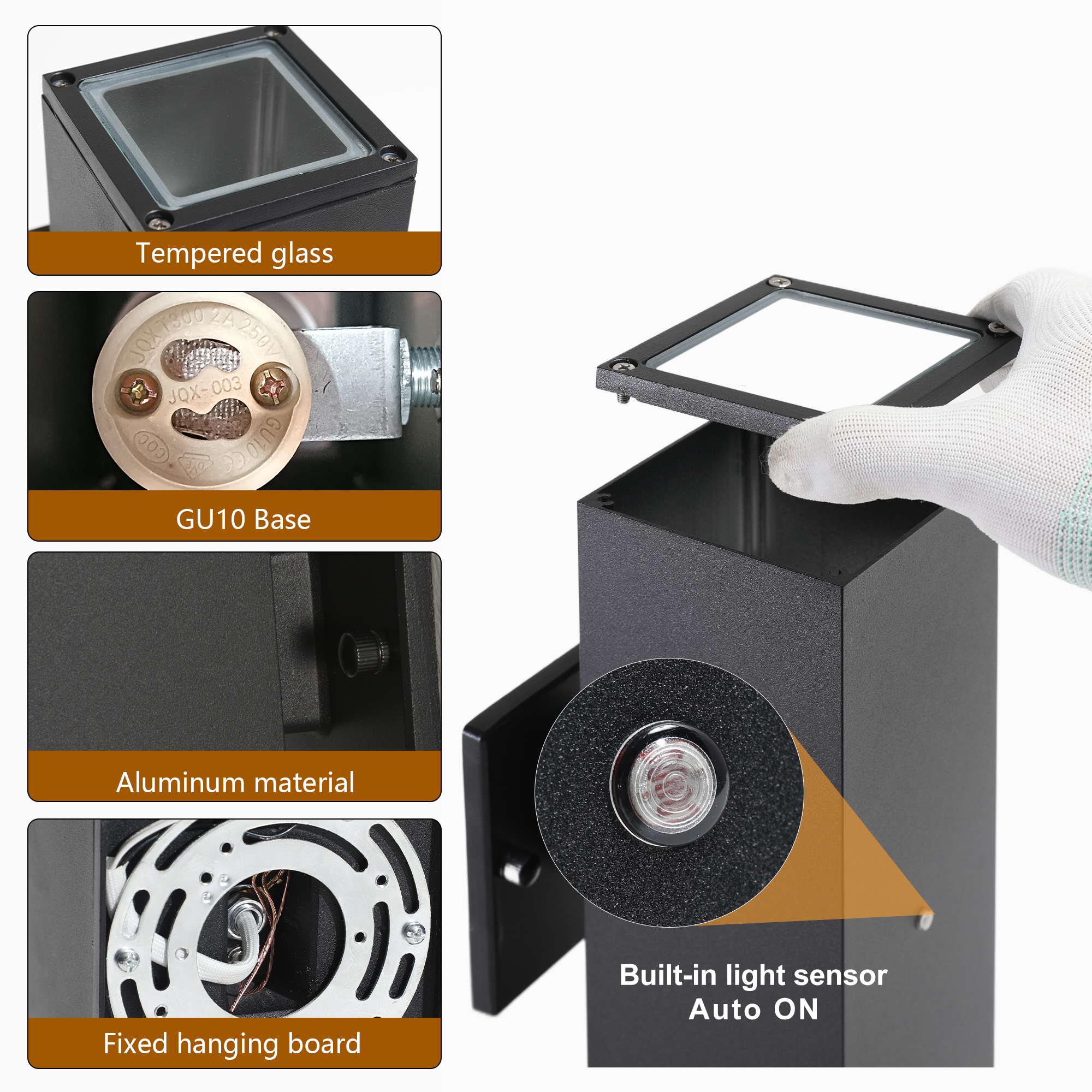 NEOSGO Outdoor Wall Light Fixture,Exterior Lighting Fixtures,Dusk to Dawn Modern Sconce Lights for Porch Patio Garage Front Door (Black,Square,with Sensor,2PK) is intended to provide focused wall lighting while also adding decorative detail to the surrounding space. This style is especially useful near mirrors, over bathroom vanities, along hallways, in bedrooms, or in accent areas that benefit from directed light rather than relying only on ceiling fixtures. Based on the product presentation, it offers a practical mix of daily illumination and visual styling, which helps the room feel more complete and intentionally designed. It is a good option for customers who want better task lighting together with a more refined finished look on the wall. Overall size is approximately 8.5 x 5.5 x 12.4 inches with a listed weight of 4.8. The current listing includes 9 product images, which help clarify the product shape, proportions, and visual placement in a real room setting.