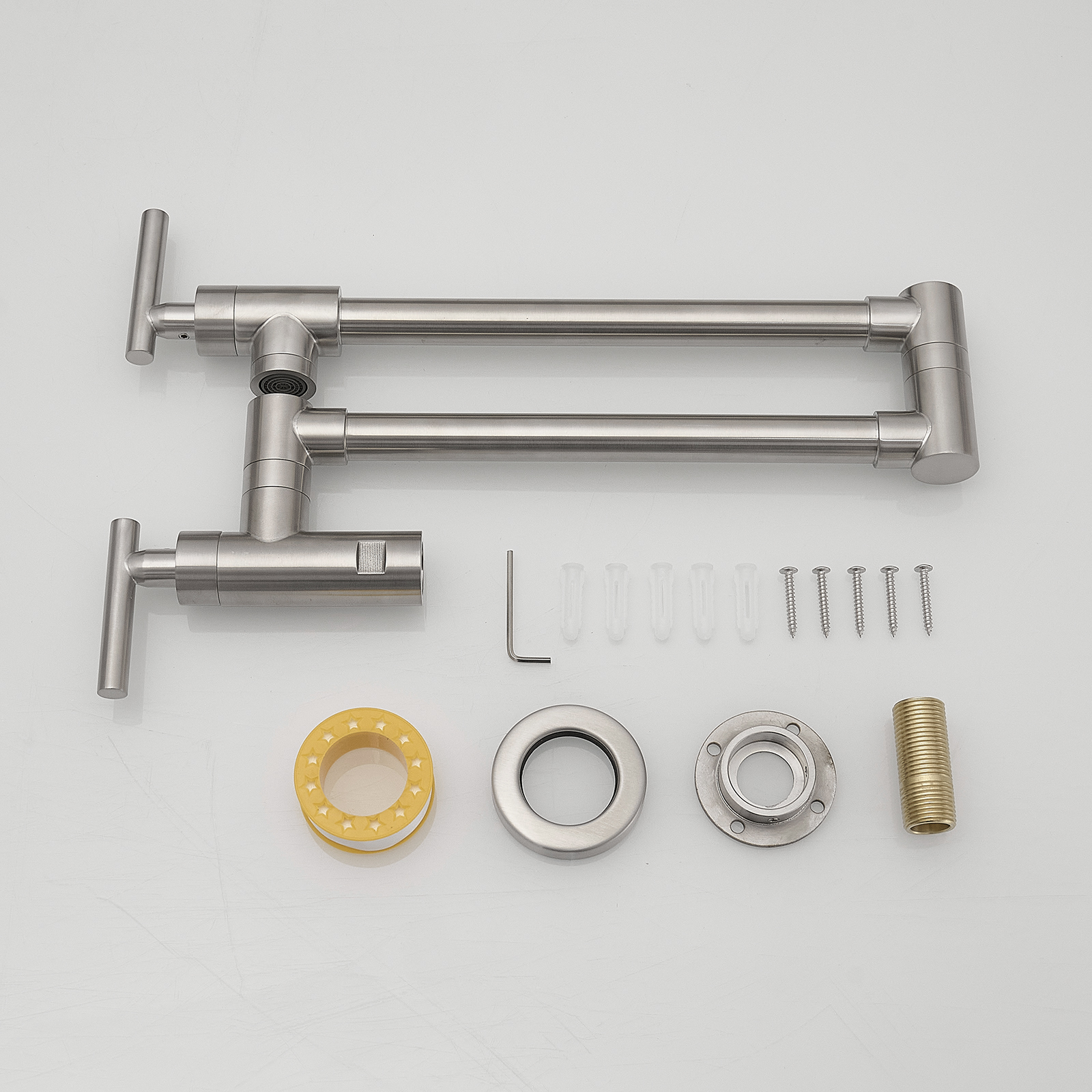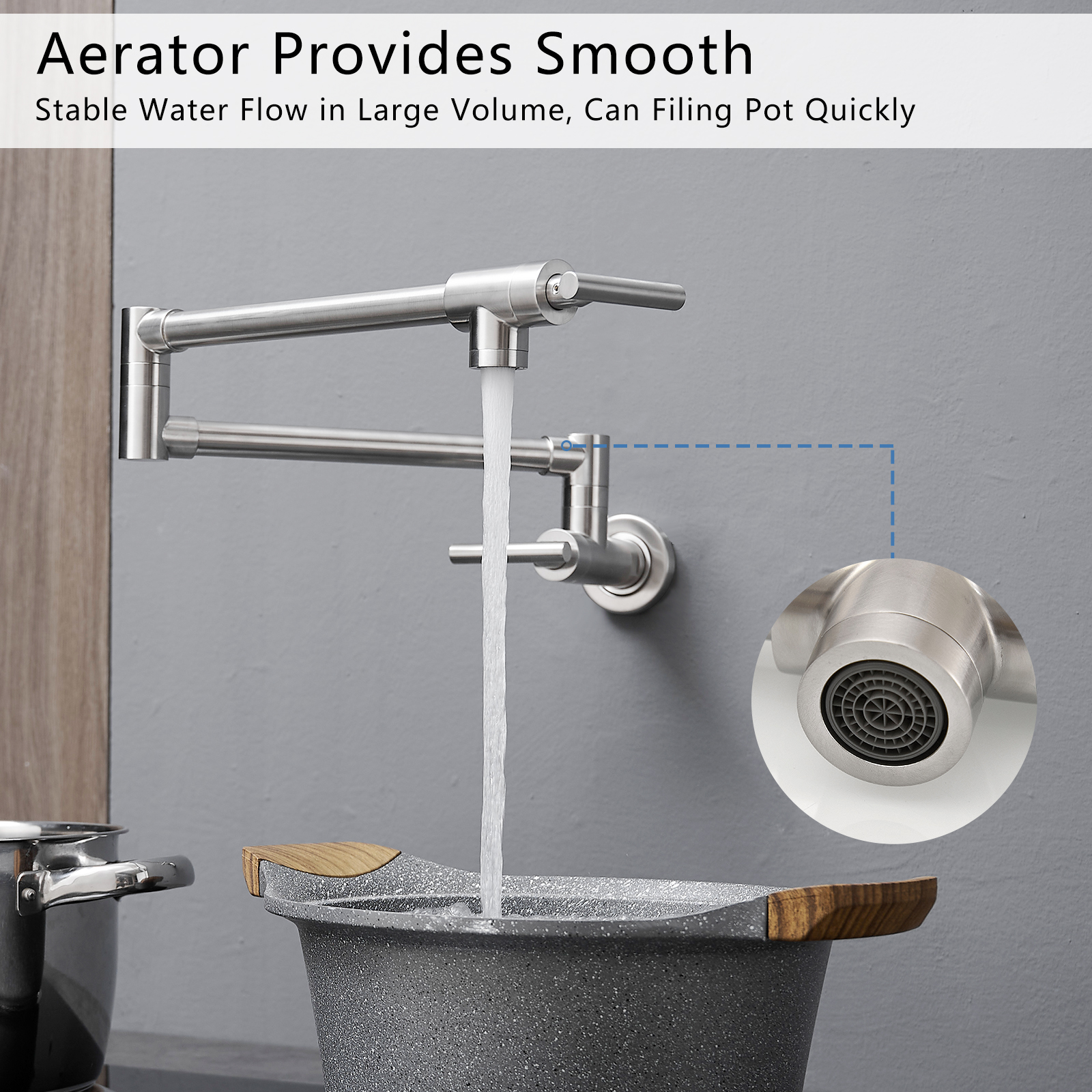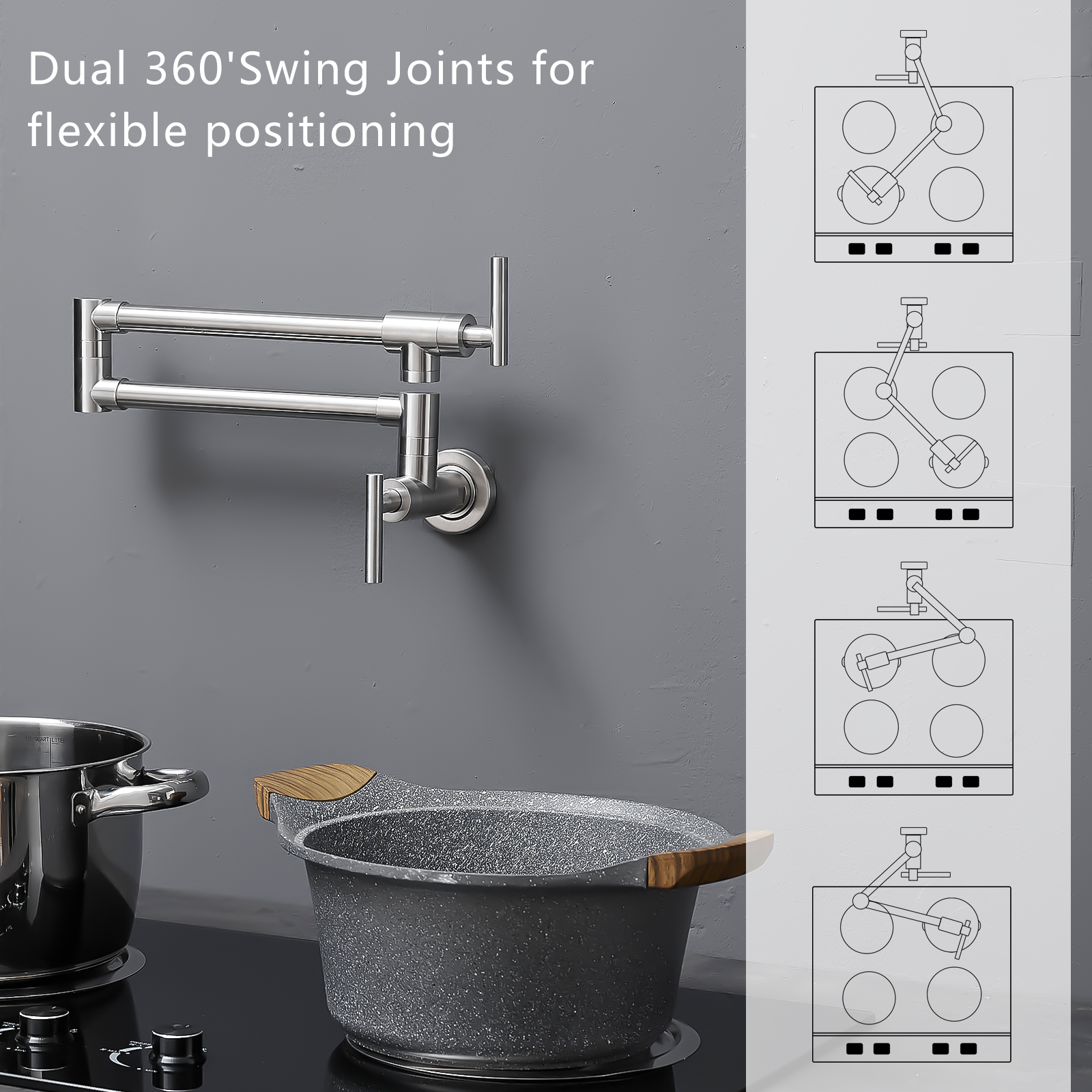 Wall mounted Pot Filler Faucet, Modern Brass Pot Filler Two-Attachment Wall Mount Folding Kitchen Pot Filler Swing Arm