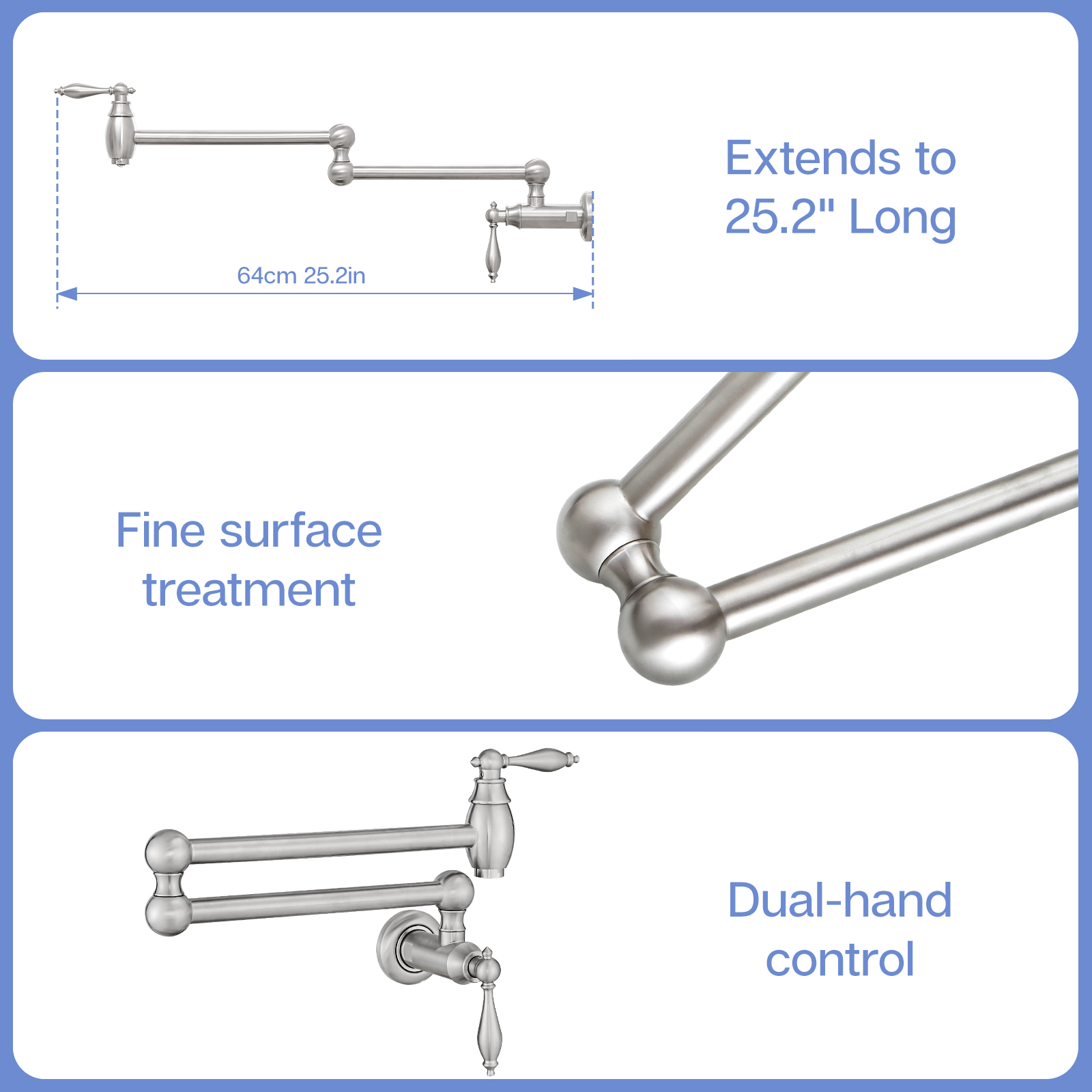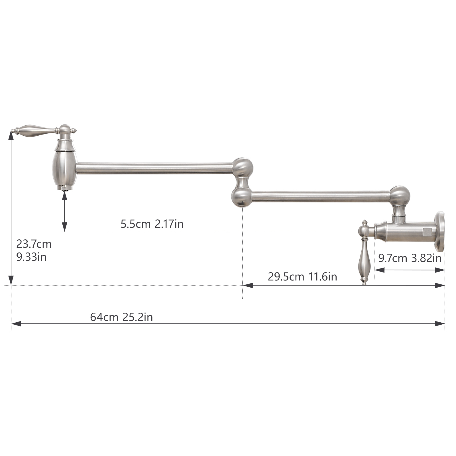 FLG Pot Filler,Wall Mount Commercial Pot Filler Faucet,Brass Material Kitchen Folding Faucet,Coffee Machine Faucet with Stretchable Double Joint Swing Arms,Style A,Brushed Nickel. Works well as accent or supplemental wall lighting for hallways, bedrooms, bathrooms, and other interior spaces. Material: brass. Product dimensions and weight: length 15.8, width 9.8, height 2.1, weight 3.8.