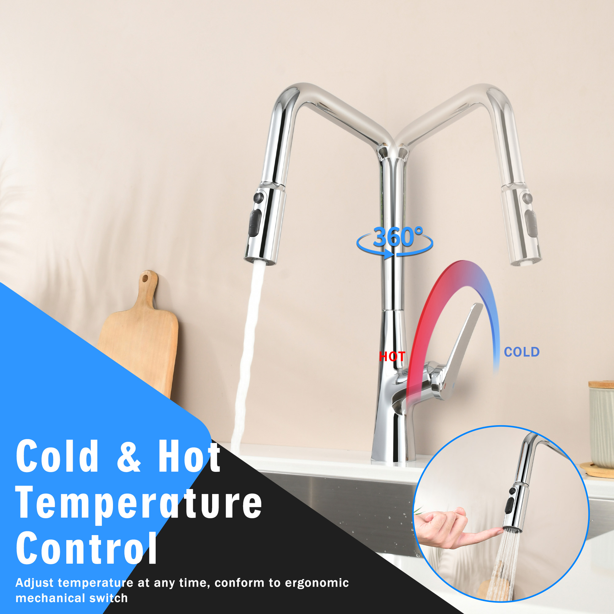 Kitchen Faucets Single Handle Pull Down Sprayer Spring Kitchen Sink Faucet
