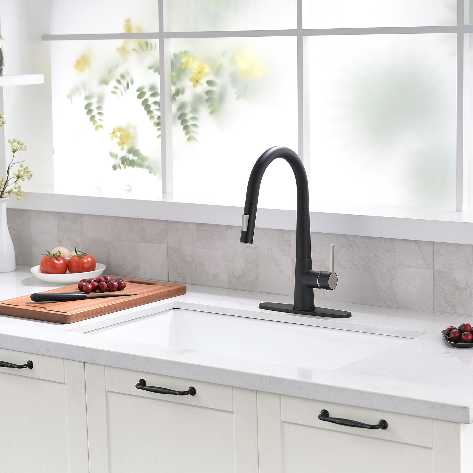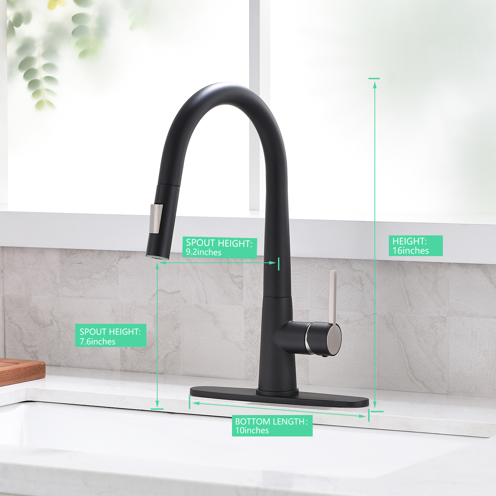 FLG Pull Out Kitchen Faucet Black Kitchen Faucet Single Handle Kitchen faucet. Designed as a practical decorative lighting piece that supports everyday use while helping complete the look of the space. Material: brass. Product dimensions and weight: length 17.9, width 13.8, height 2.8, weight 4.6.