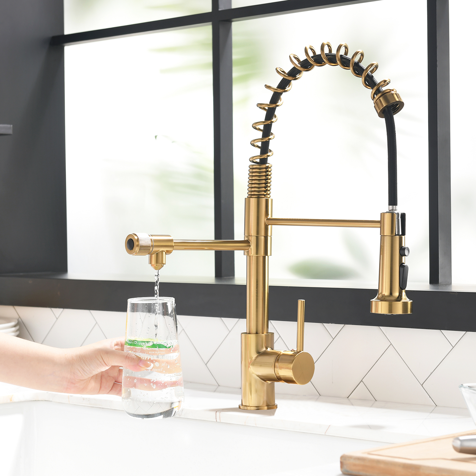 FLG Purifier Kitchen Faucet Drinking Water Faucet, Pull Down Water Filter Kitchen Sink Faucets (Black and Nickel gold ). Designed as a practical decorative lighting piece that supports everyday use while helping complete the look of the space. Material: brass. Product dimensions and weight: length 18.3, width 13.8, height 3.1, weight 6.5.