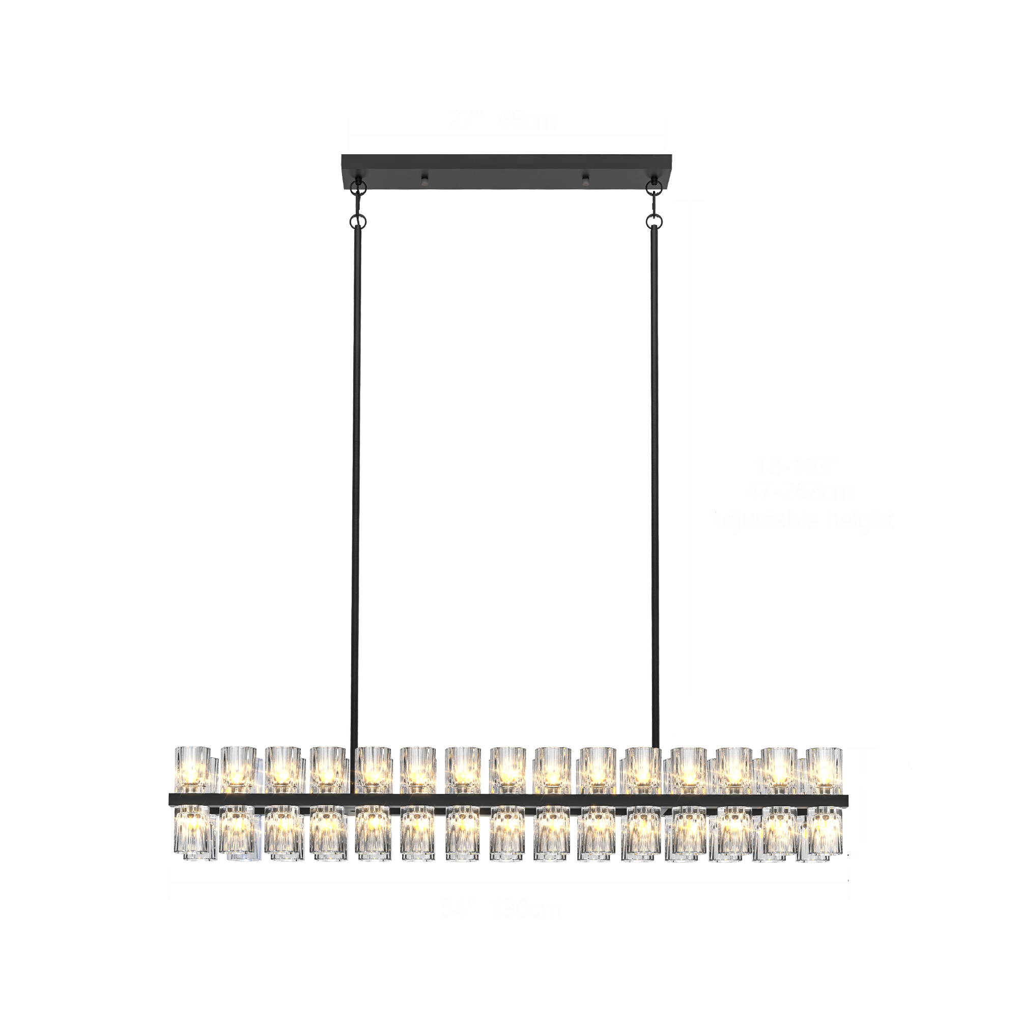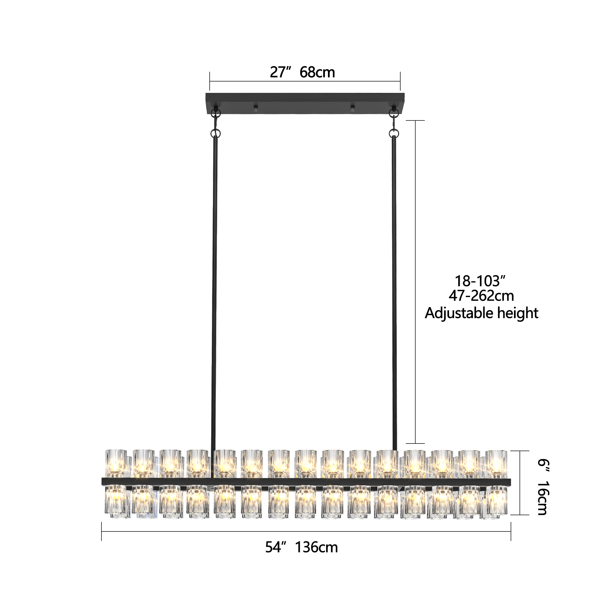 Rectangular Luxurious Crystal Chandelier for Living Room & Dining Room, Black Frame with K9 Crystals