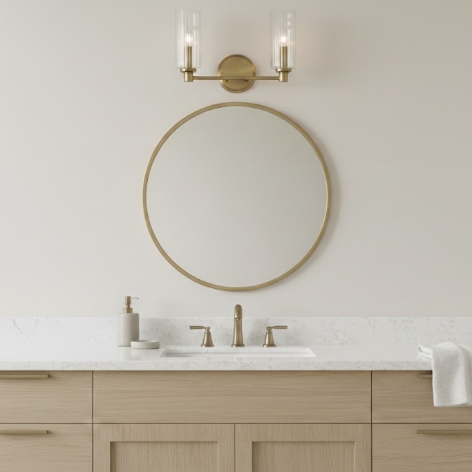 NEOSGO Regal Double Light Vanity With Clear Ribbed Glass - Satin Brass is intended to provide focused wall lighting while also adding decorative detail to the surrounding space. This style is especially useful near mirrors, over bathroom vanities, along hallways, in bedrooms, or in accent areas that benefit from directed light rather than relying only on ceiling fixtures. Based on the product presentation, it offers a practical mix of daily illumination and visual styling, which helps the room feel more complete and intentionally designed. It is a good option for customers who want better task lighting together with a more refined finished look on the wall. Overall size is approximately 9.5 x 7.5 x 16.5 inches with a listed weight of 3.5. The current listing includes 12 product images, which help clarify the product shape, proportions, and visual placement in a real room setting.
