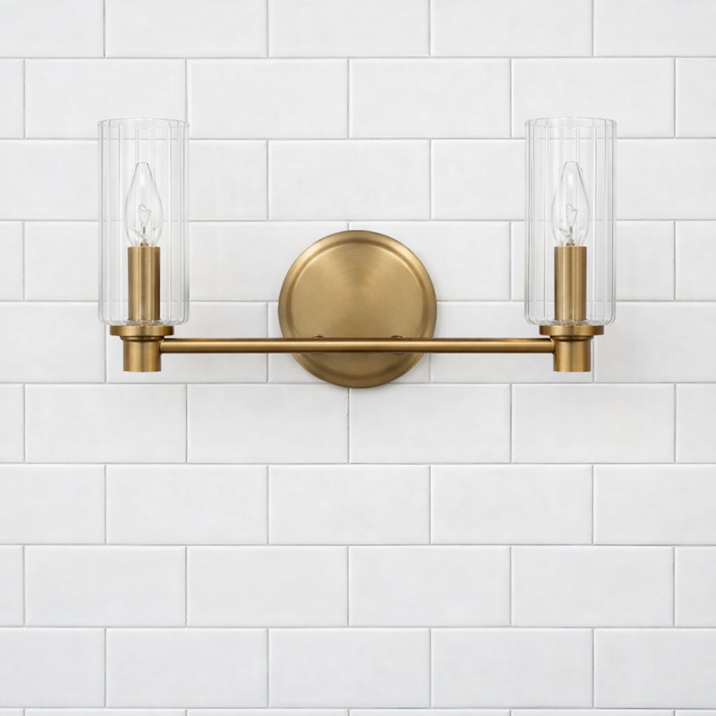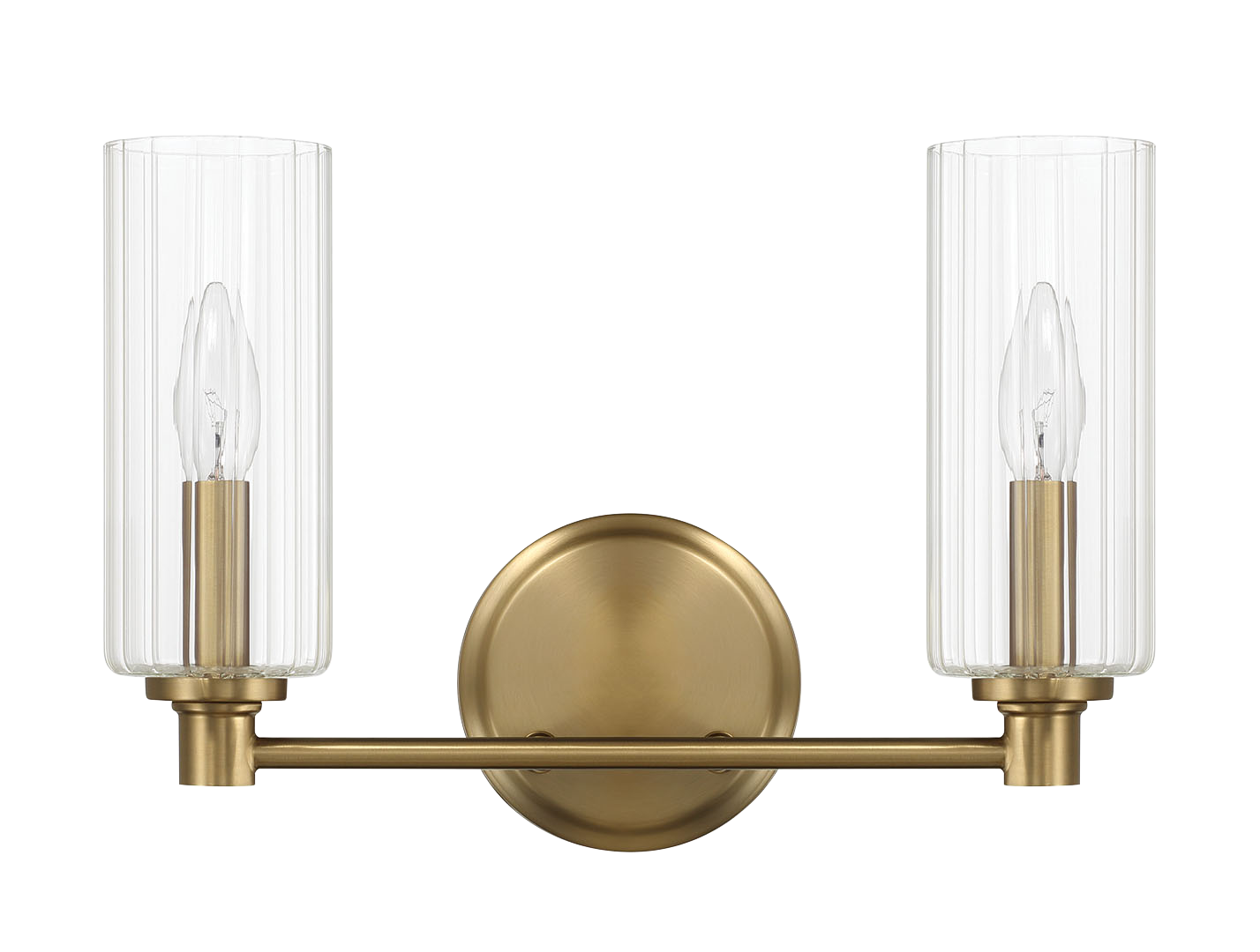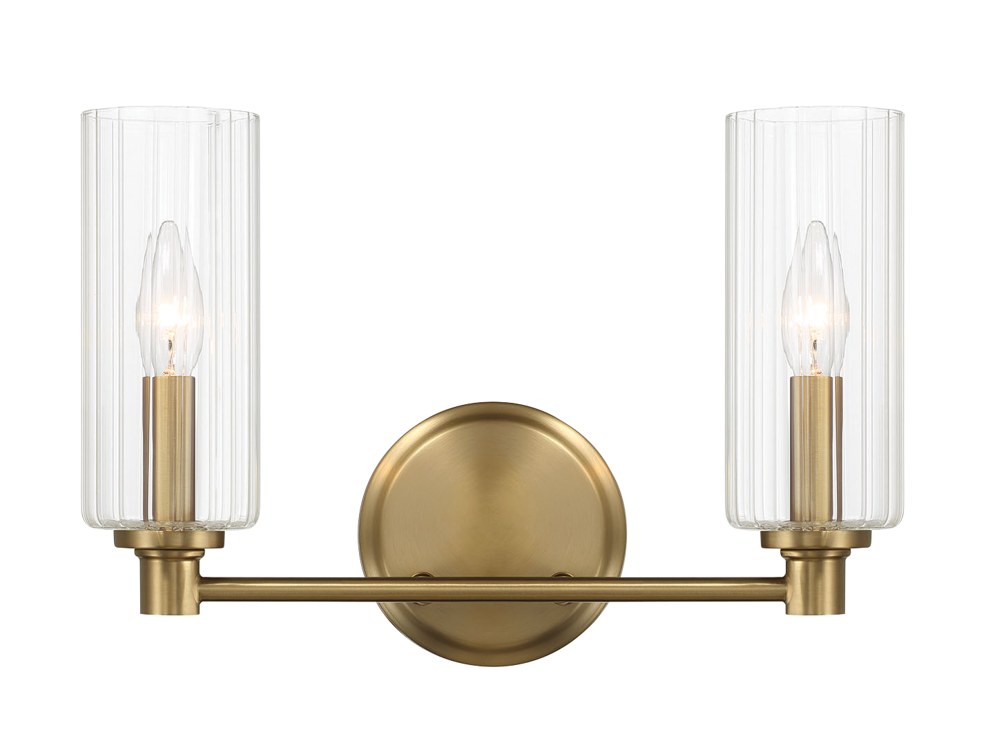 Regal Double Light Vanity With Clear Ribbed Glass - Satin Brass