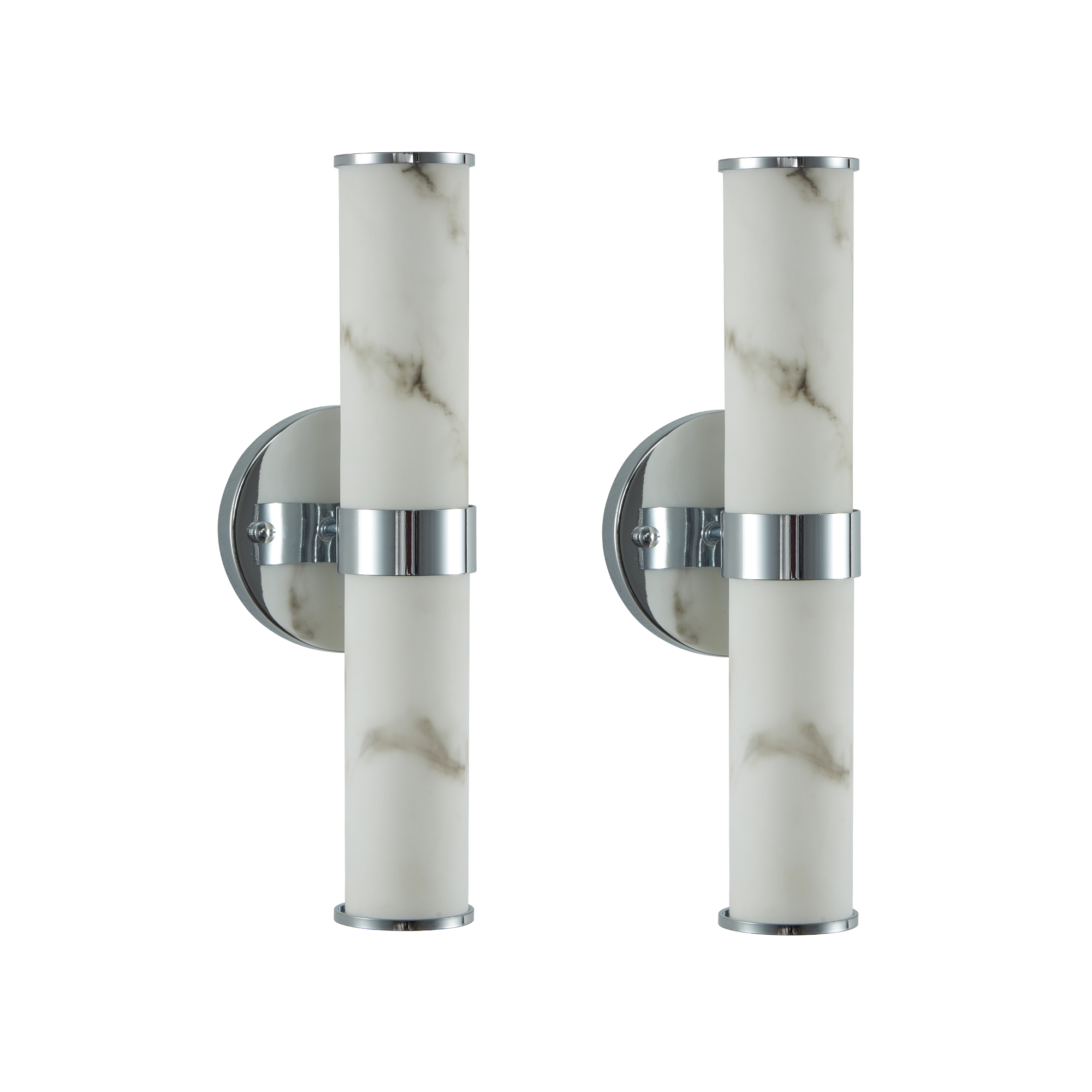 Resin Imitation Marble and Chrome Wall Sconce, Set of 2,Modern Vertical Light Fixture for Bathrooms, Hallways, and Bedrooms (Only Indoor)