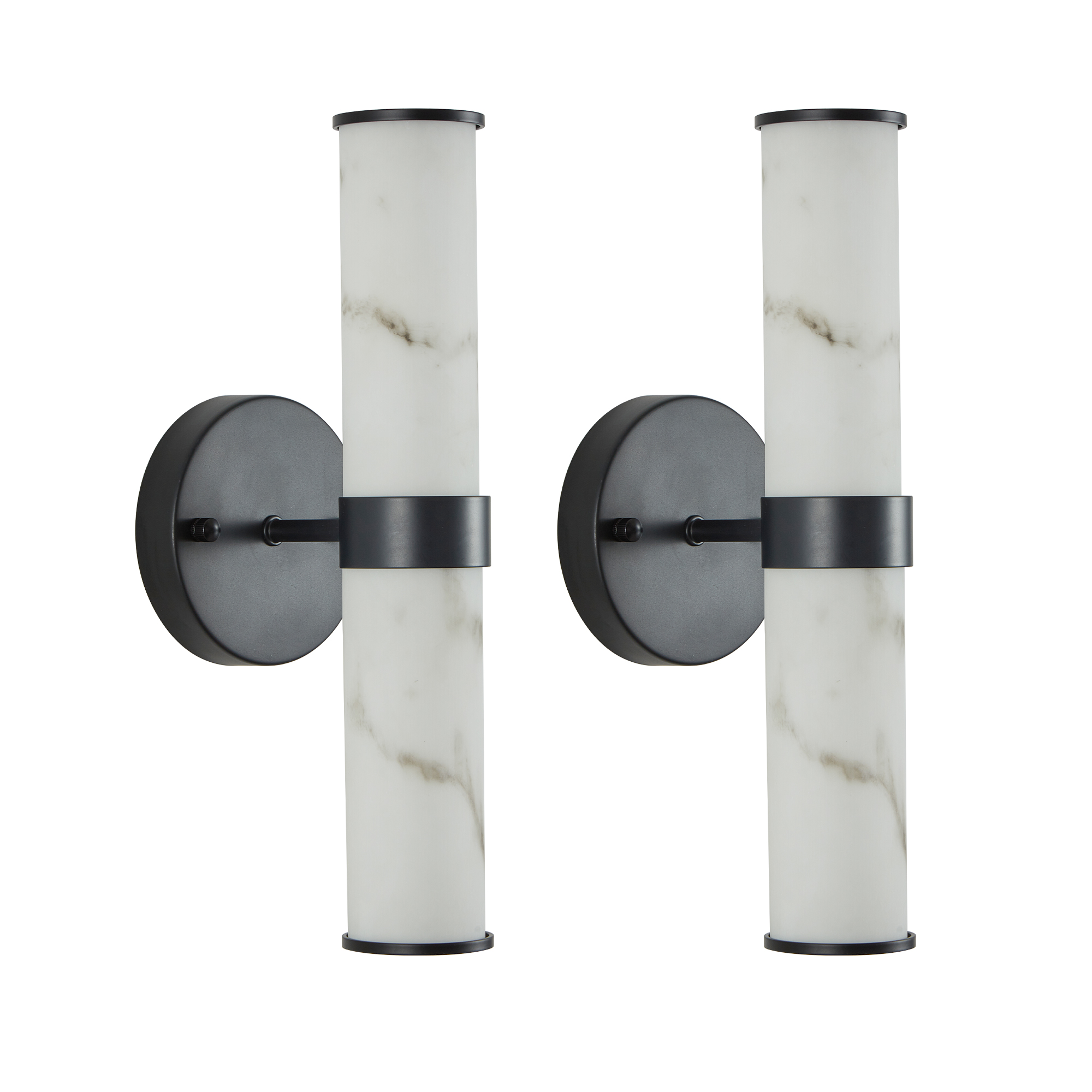 Resin Imitation Marble Texture Wall Light with Black Iron Metal Frame,Set of 2,Elegant Lighting Fixtures for Hallways,Bathrooms,and Bedrooms (Only Indoor)