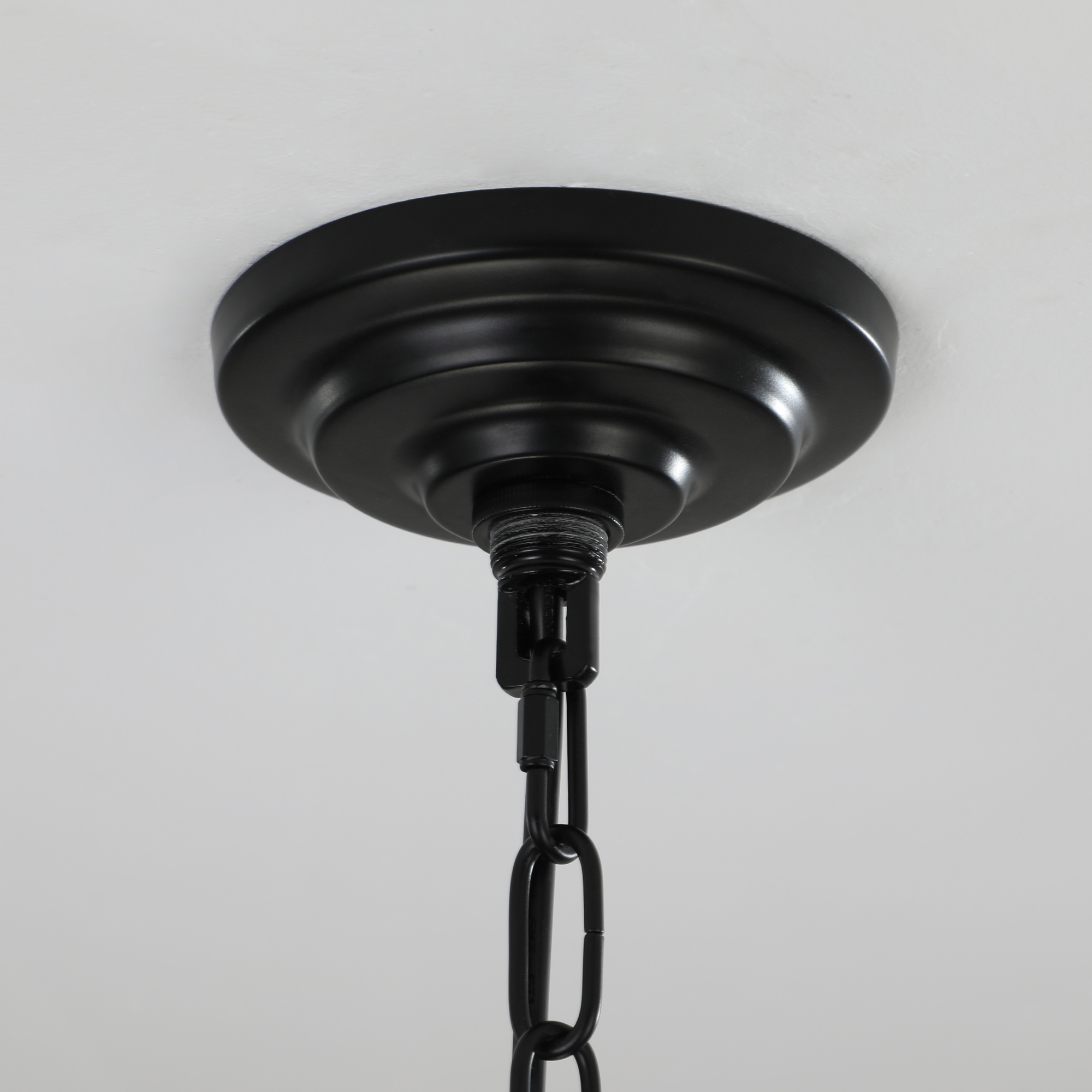 (Same as W1340142527/L1018-B) 18" Modern 8-Light Black Geometric Pendant Chandelier, Industrial Metal Frame, Adjustable Hanging Light for Living Room, Dining Room, Kitchen (No Bulbs)