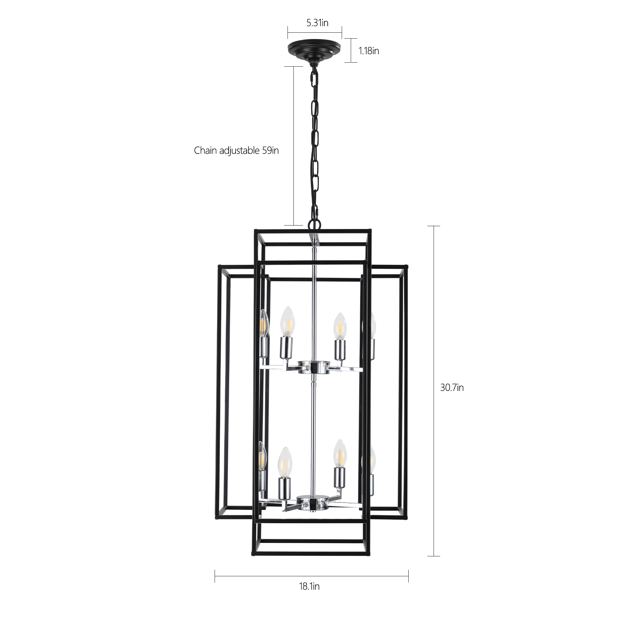 (Same as W1340142525/L1018-C) 18" Modern 8-Light Black & Chrome Geometric Pendant Chandelier, Industrial Metal Frame, Adjustable Hanging Light for Living Room, Dining Room, Kitchen (No Bulbs)