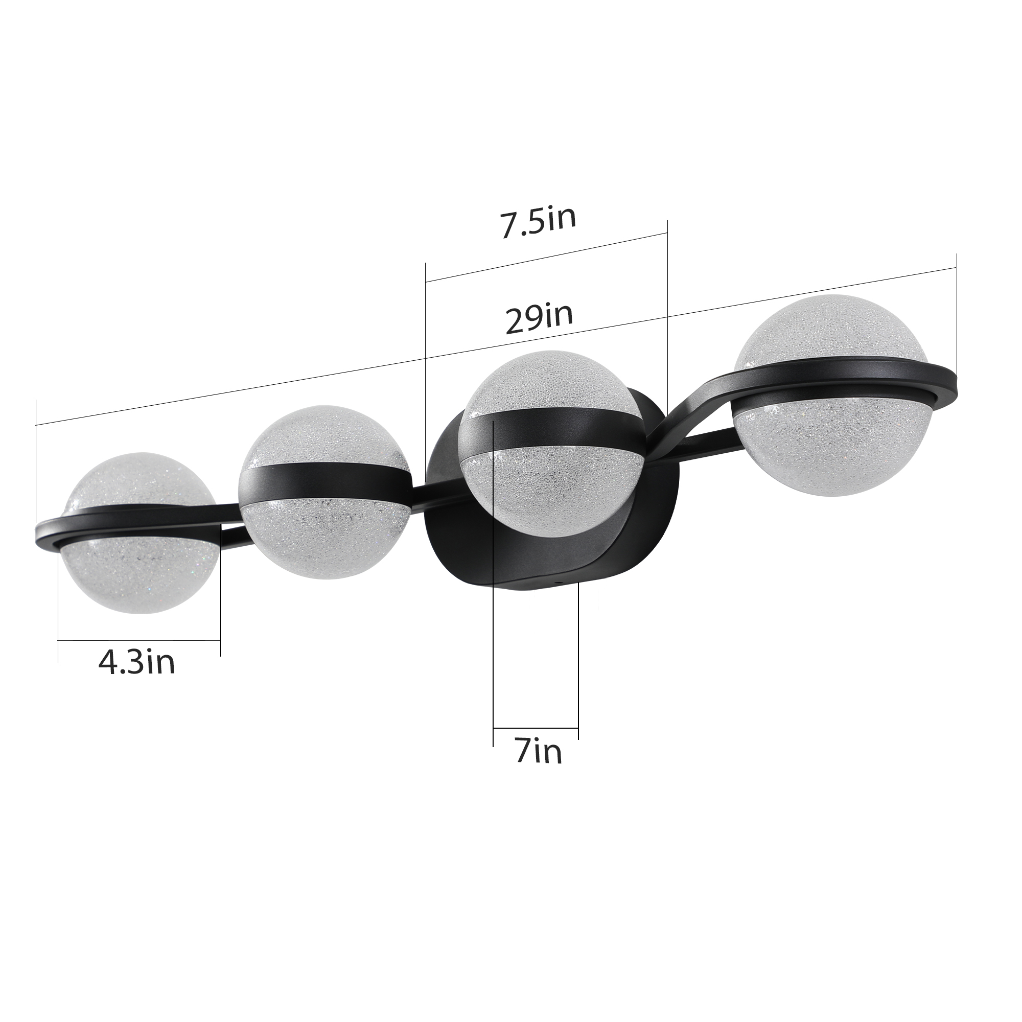 (Same as W1340P143677/L2001-B-4) 30" Black Minimalist LED Bathroom Vanity Light with Crystal Sand Acrylic Shades, 4-Light Wall Mounted Decorative Lighting Fixture, Suitable for Bathroom Vanity Mirror