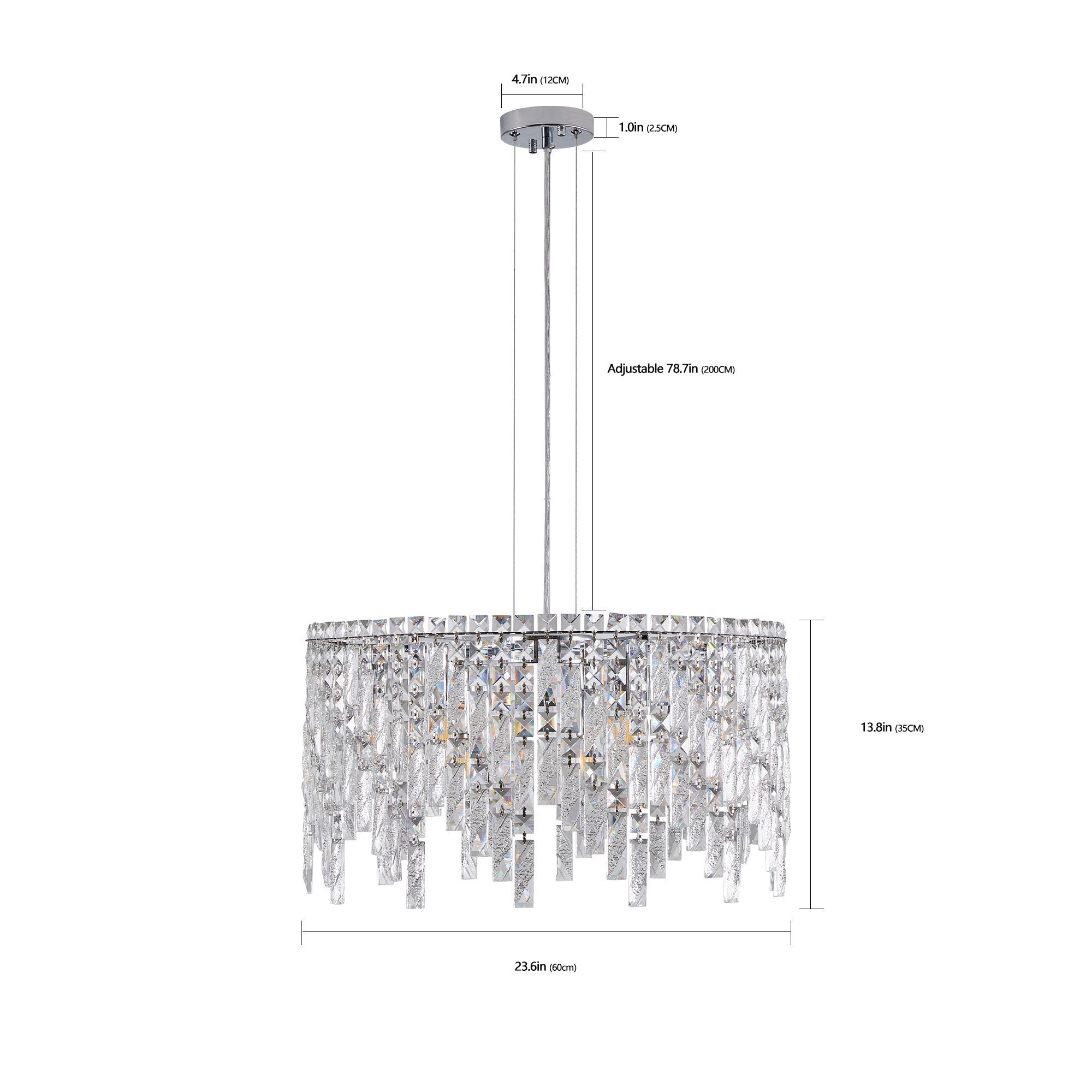 (Same as W1340P189437/L5024-600-C) 24" Luxurious Round Silver Crystal Chandelier, Contemporary Rectangular Pendant Light for Dining Room, Living Room, and Grand Foyers (Bulbs Not Included)