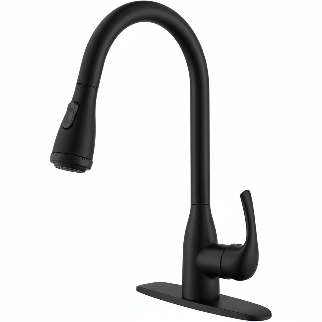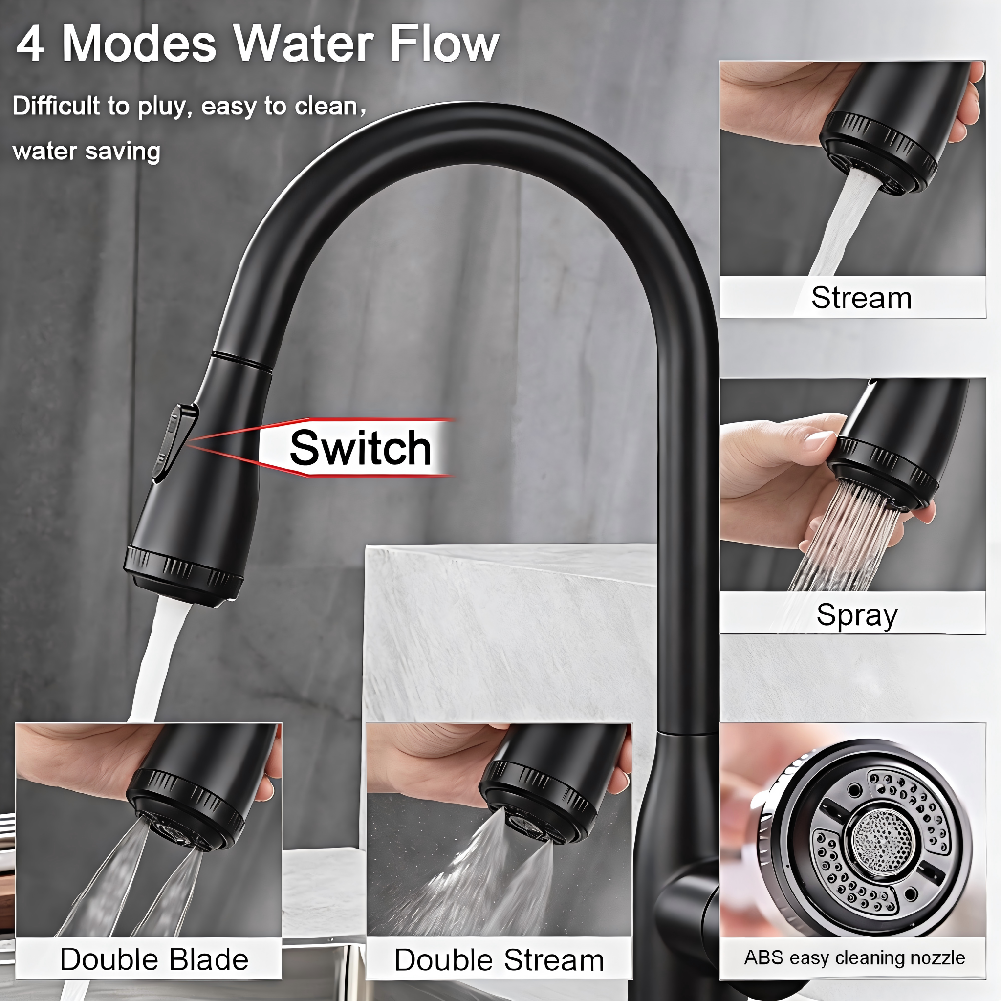 Single Handle High Arc Matte Black Pull Out Kitchen Sink Faucet with 4 Spraying Modes,Single Level Stainless Steel with Pull Down Sprayer