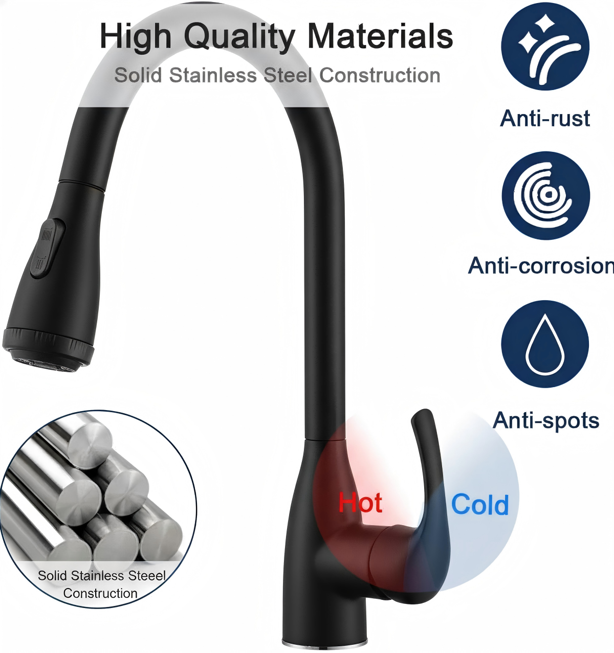 Kitchen Faucets Single Handle Pull Down Sprayer Spring Kitchen Sink Faucet