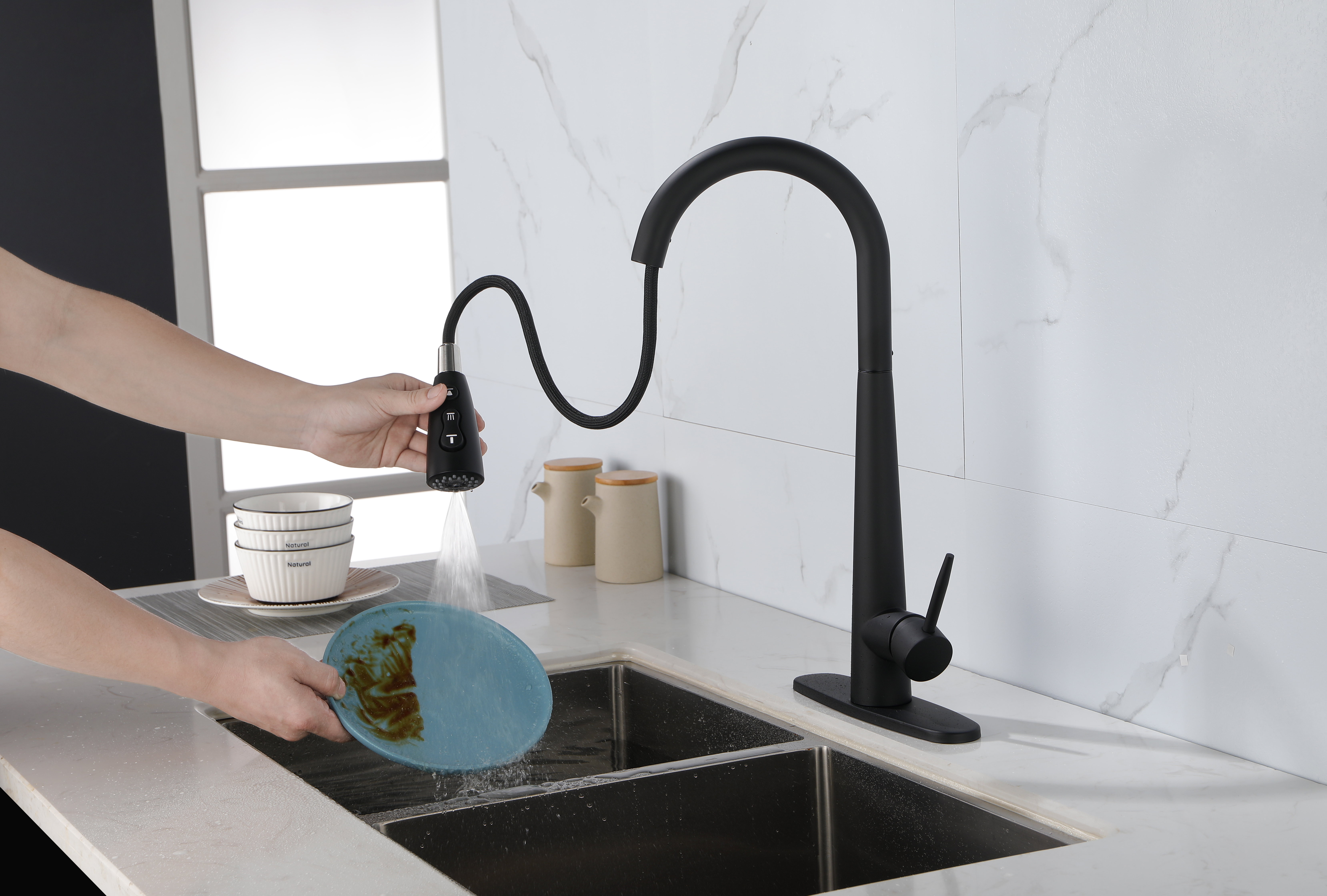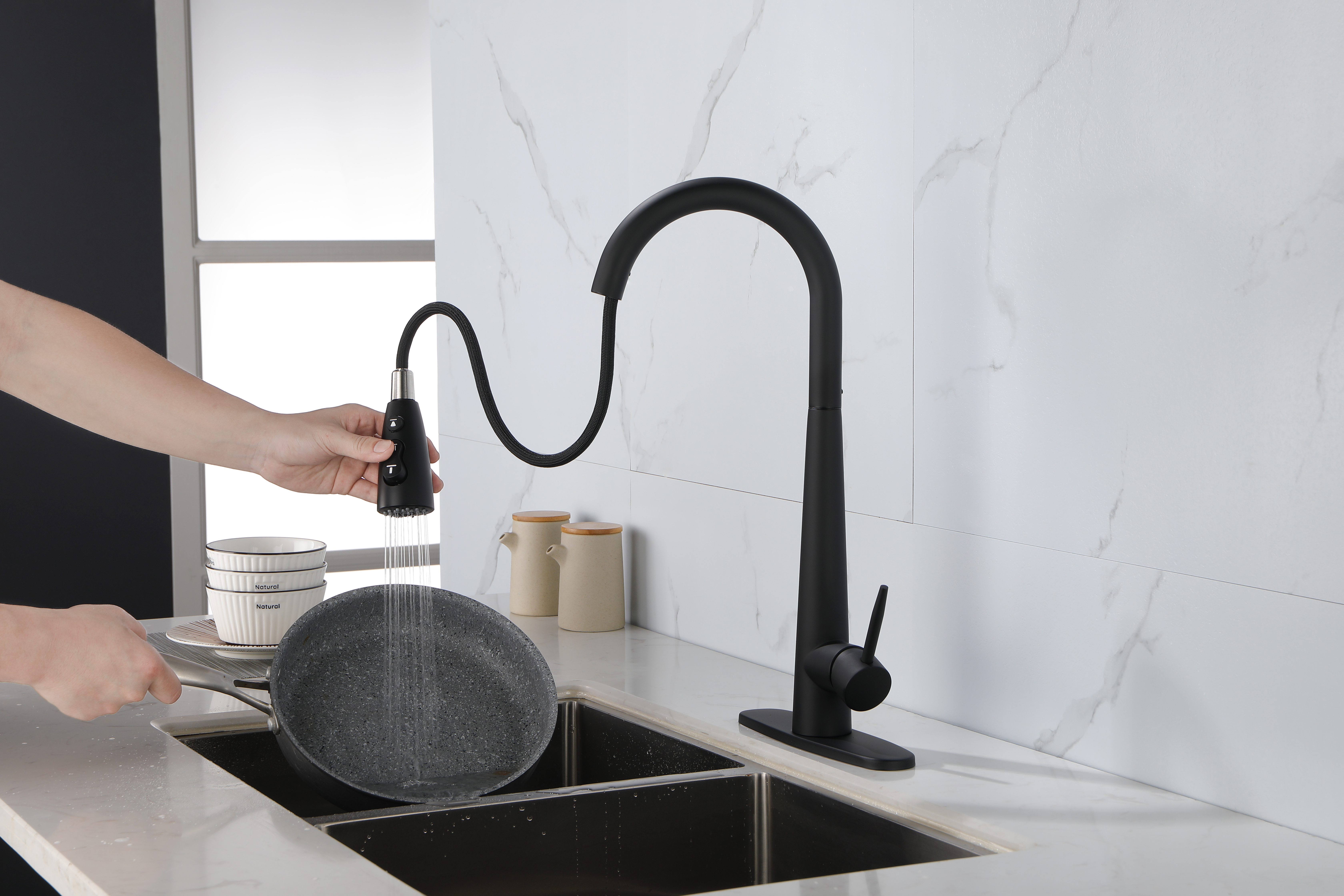 Kitchen Faucets Single Handle Pull Down Sprayer Spring Kitchen Sink Faucet