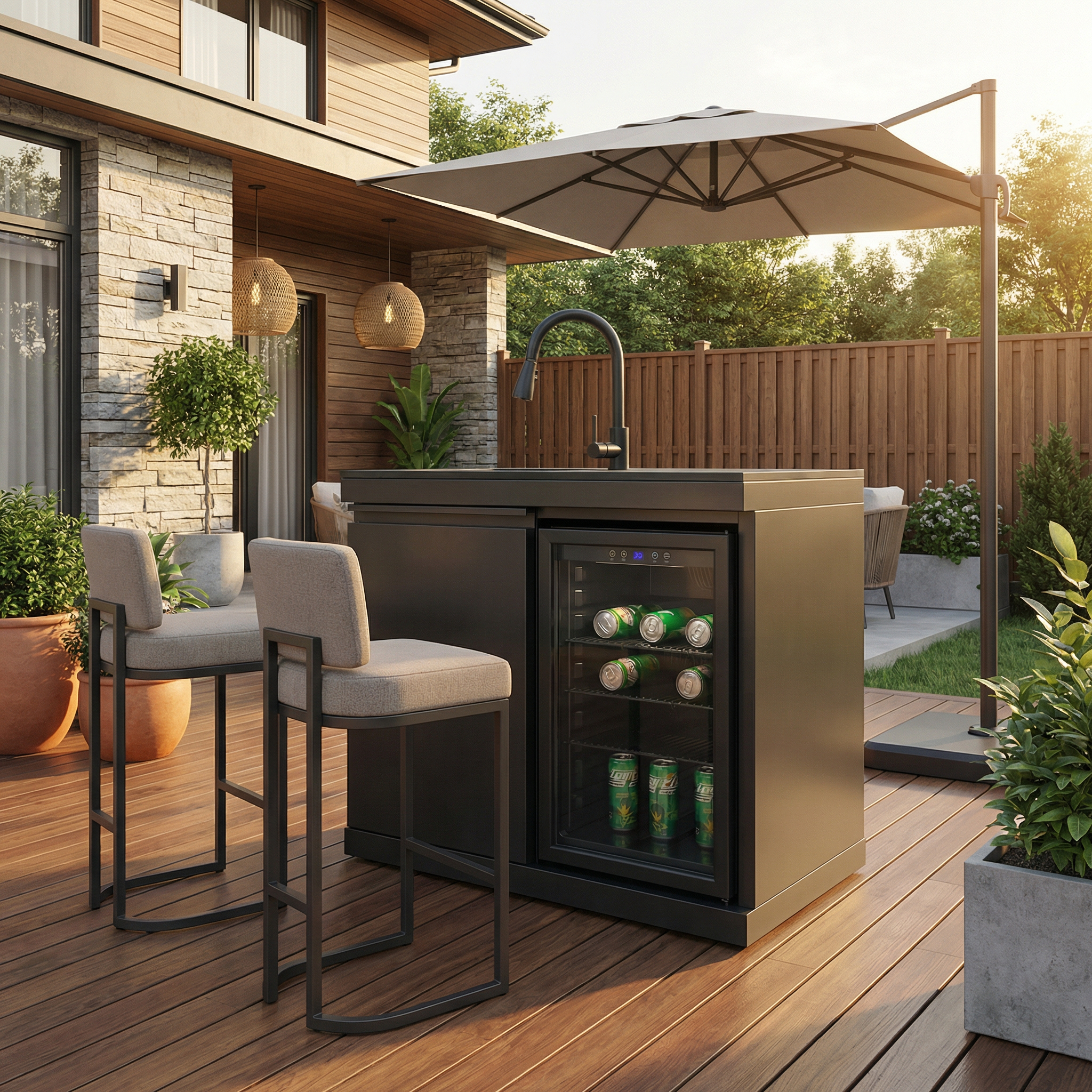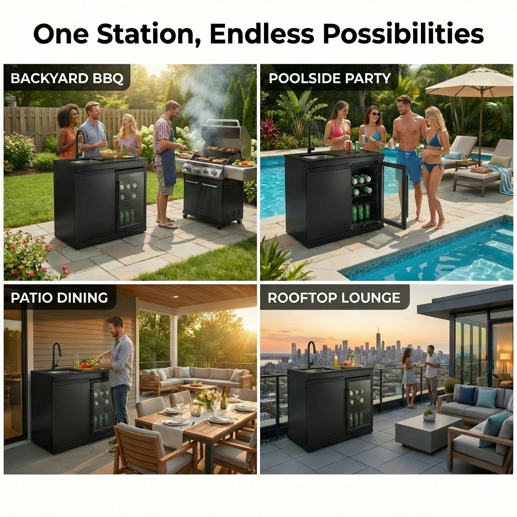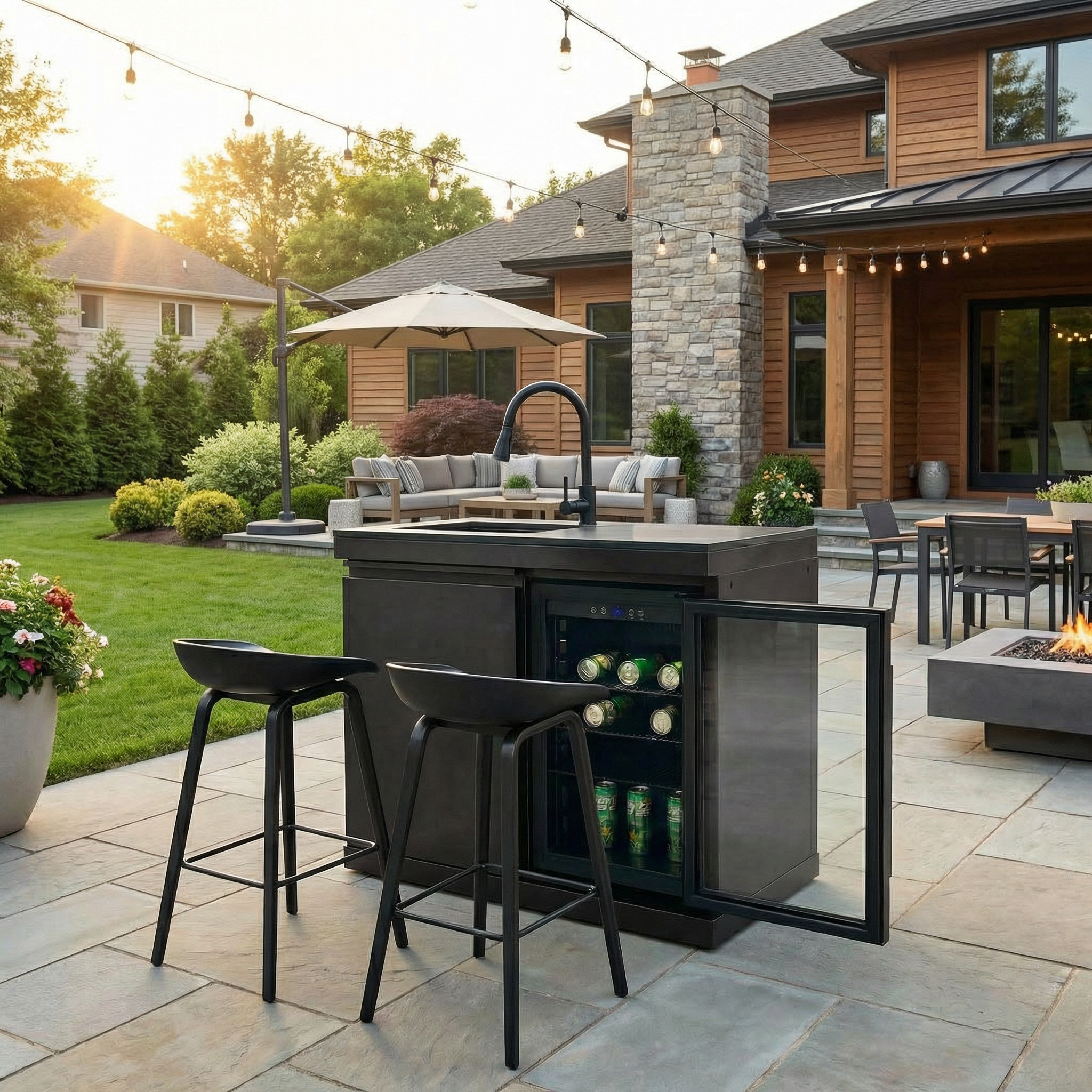 Fuente Sink and Fridge Combo for Outdoor Kitchen, 70L Refrigerator and Sink with Pull-Down Faucet, Brushed SS and Black Granite Countertops, All-in-One BBQ Island Cleaning Station (Black). Intended to add dependable illumination and a finished look to exterior doors, porches, patios, or other outdoor areas. Material: Stainless Steel. Product dimensions and weight: length 40.55, width 25.59, height 41.34, weight 244.2.
