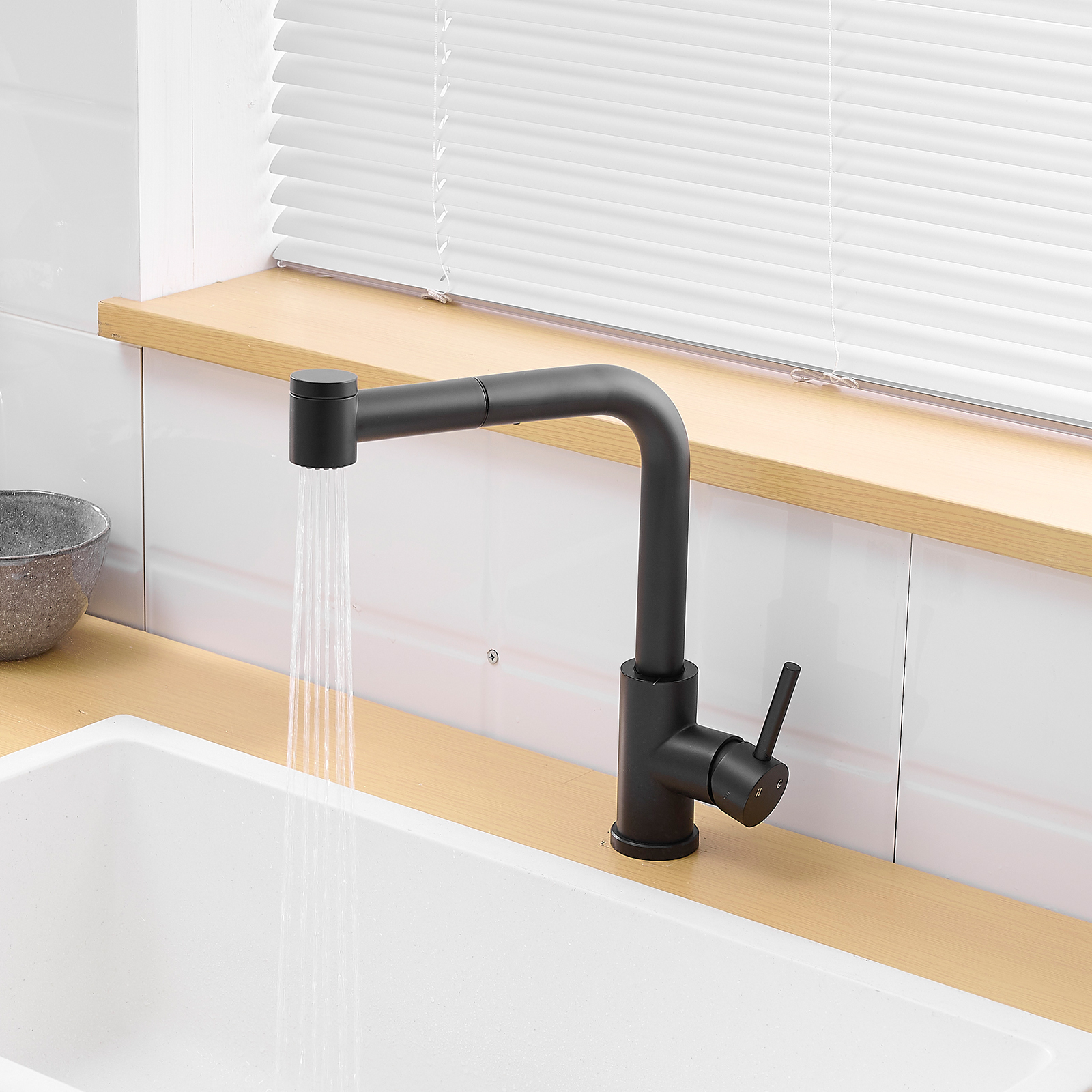 Sink Faucet, Black Kitchen Faucets with Pull out Sprayer, Bathroom Sink Faucets Mini Bar Prep Faucet