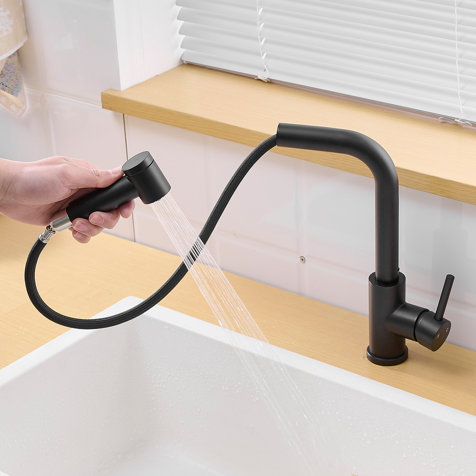 Kitchen Faucets Single Handle Pull Down Sprayer Spring Kitchen Sink Faucet