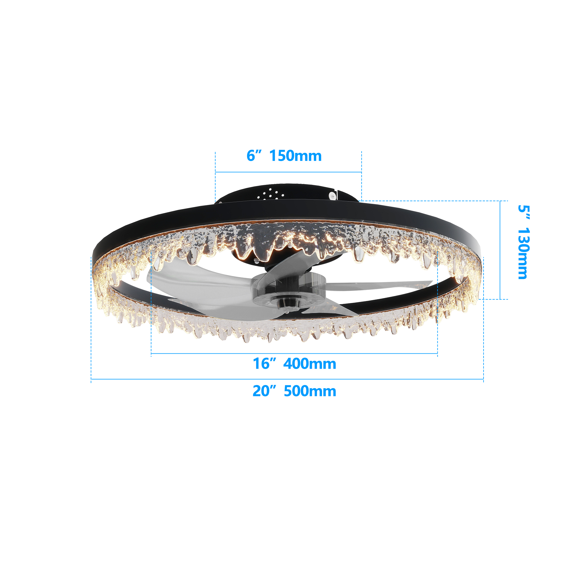 Smart Flush Mount Ceiling Fan with Light – 20-inch Integrated LED Chandelier with 5 Invisible Blades, Remote Control & Timer, Dimmable Lighting, Ultra-Quiet Operation for Bedroom, Living Room, and Din
