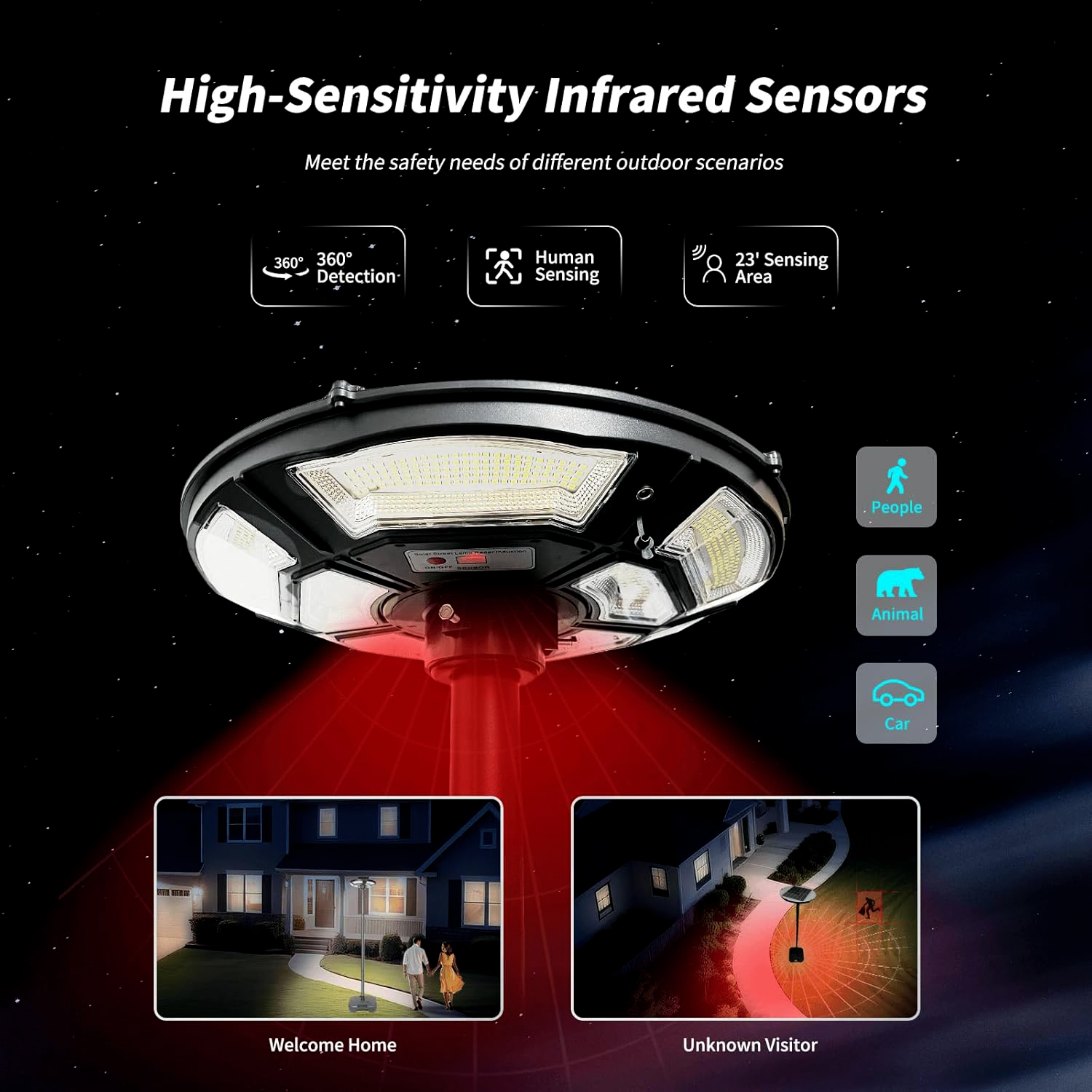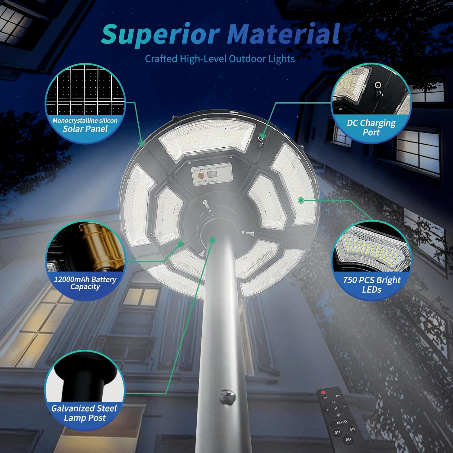 Solar Energy/Power Circular UFO Street Lamp ,LED Solar Garden Lights, Solar Lights for Outside,Highway Lighting,Household Courtyard,Rural Construction and Street Light Pole --( Include Pole)