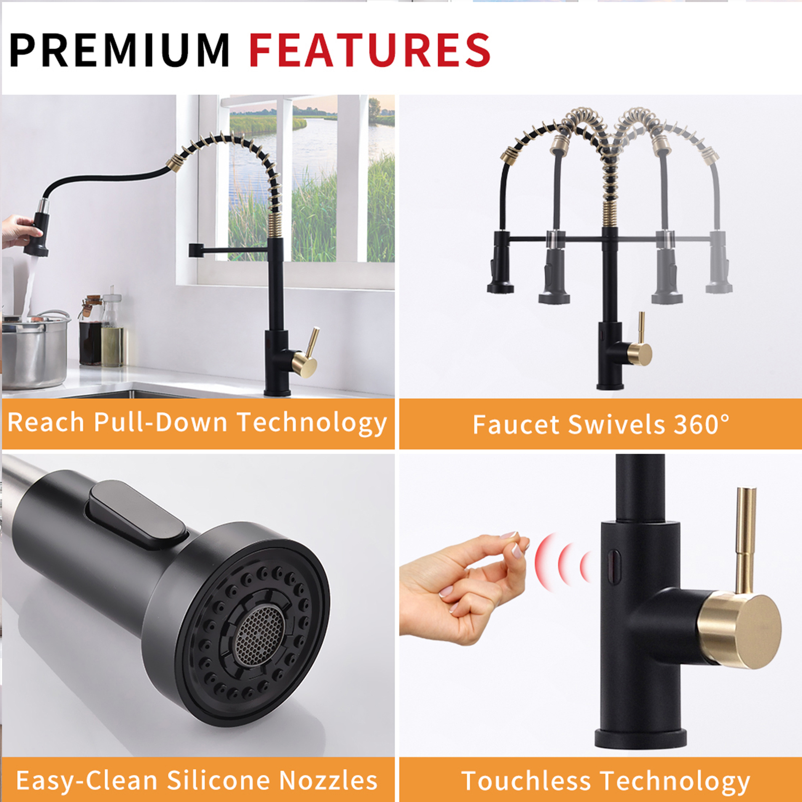 Touchless Kitchen Faucet,Hands Free Automatic Smart Kitchen Faucet Black Smart Kitchen Faucet
