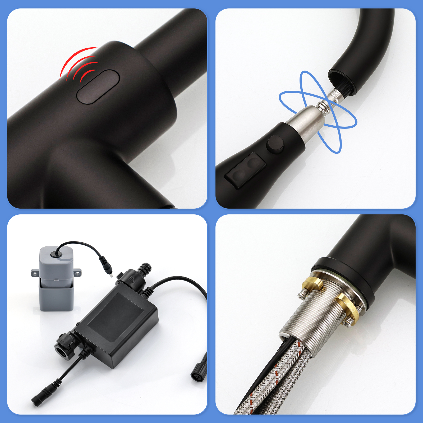 Touchless Kitchen Faucet, Hands Free Automatic Smart Kitchen Faucet, Stainless Steel Touchless Kitchen Faucet Black