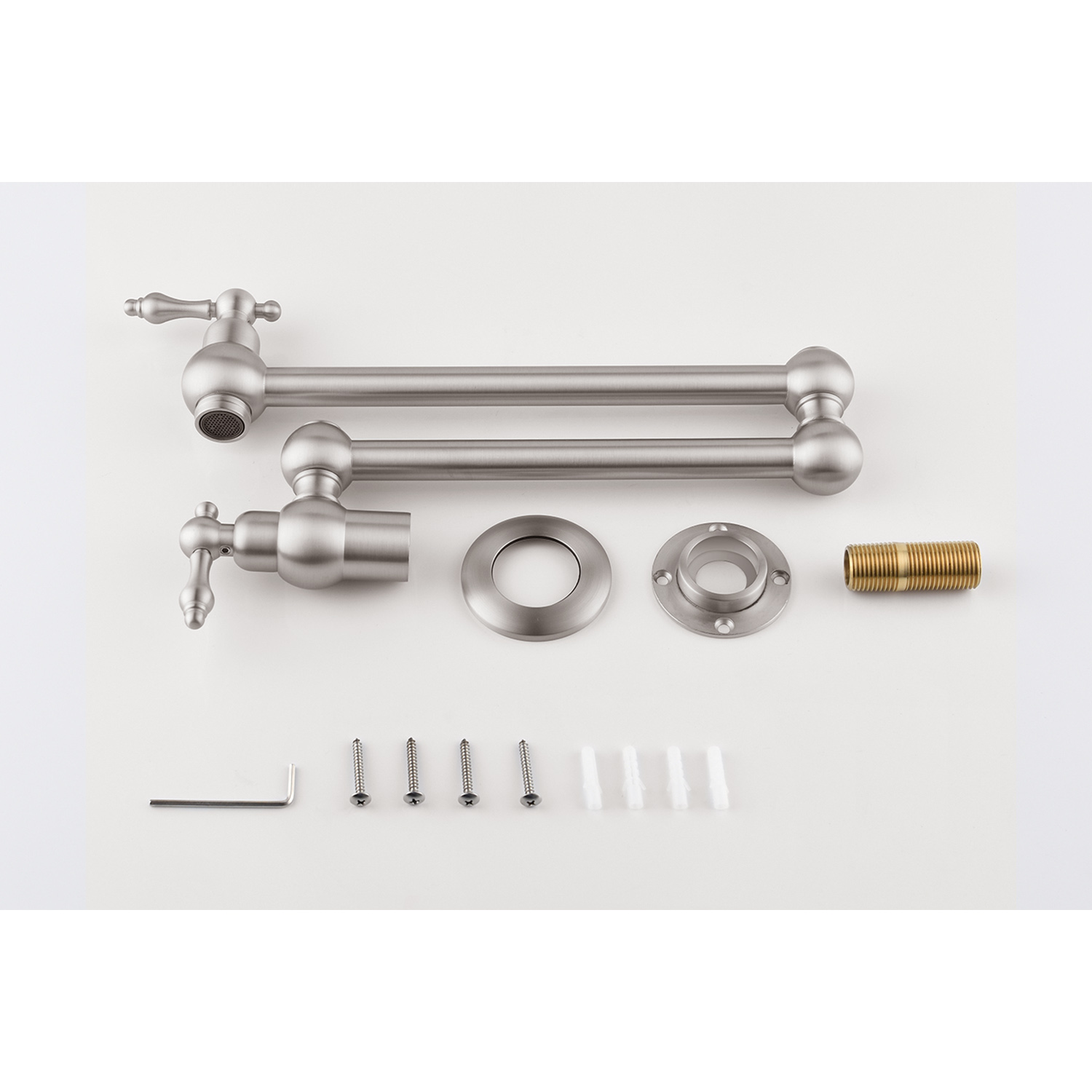 Wall mounted Pot Filler Faucet, Modern Brass Pot Filler Two-Attachment Wall Mount Folding Kitchen Pot Filler Swing Arm