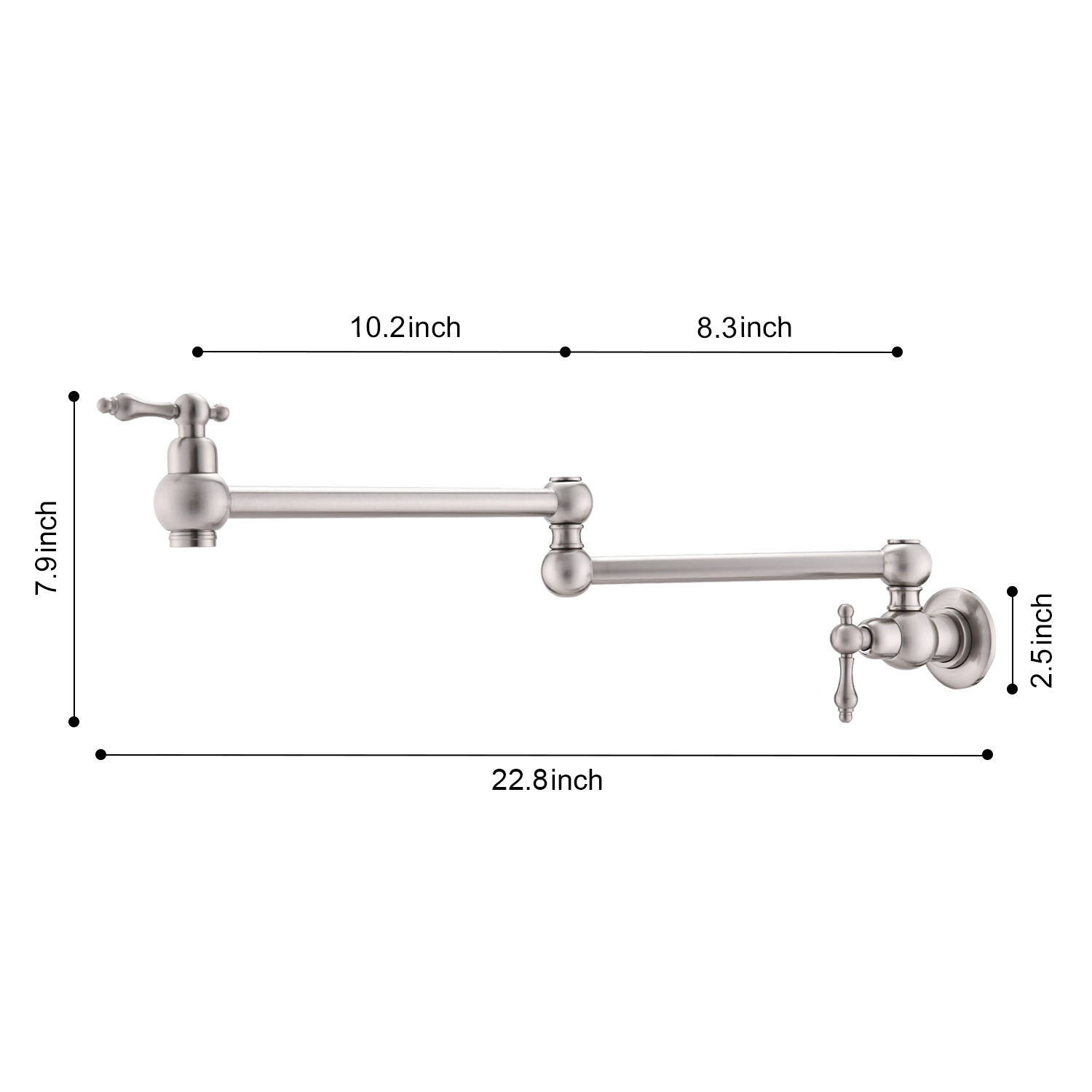 W2287 Wall Mount Folding Kitchen Pot Filler Faucet. Works well as accent or supplemental wall lighting for hallways, bedrooms, bathrooms, and other interior spaces. Material: brass. Product dimensions and weight: length 15.7, width 9.8, height 2.4, weight 3.6.