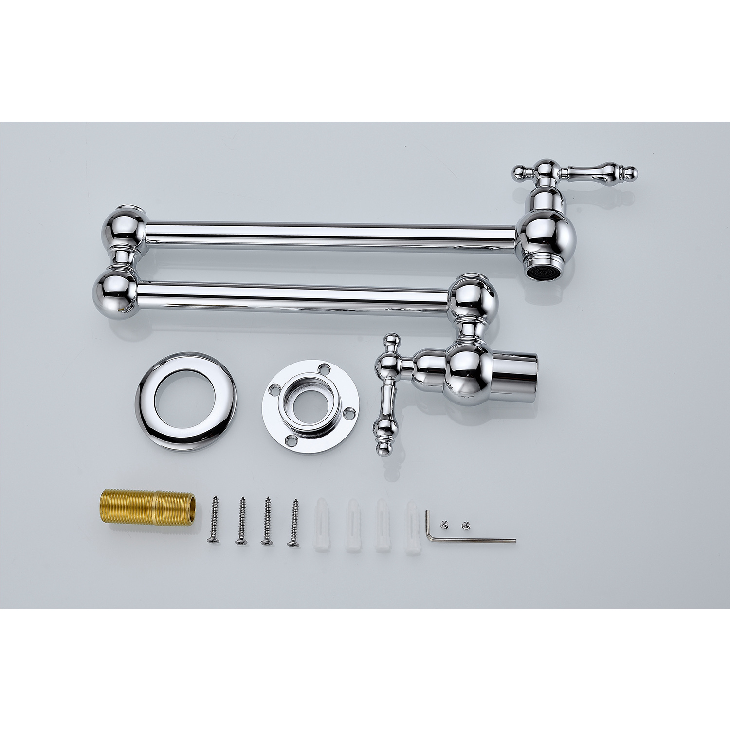 W2287 Wall Mount Folding Kitchen Pot Filler Faucet. Works well as accent or supplemental wall lighting for hallways, bedrooms, bathrooms, and other interior spaces. Material: brass. Product dimensions and weight: length 15.7, width 9.8, height 2.4, weight 3.6.