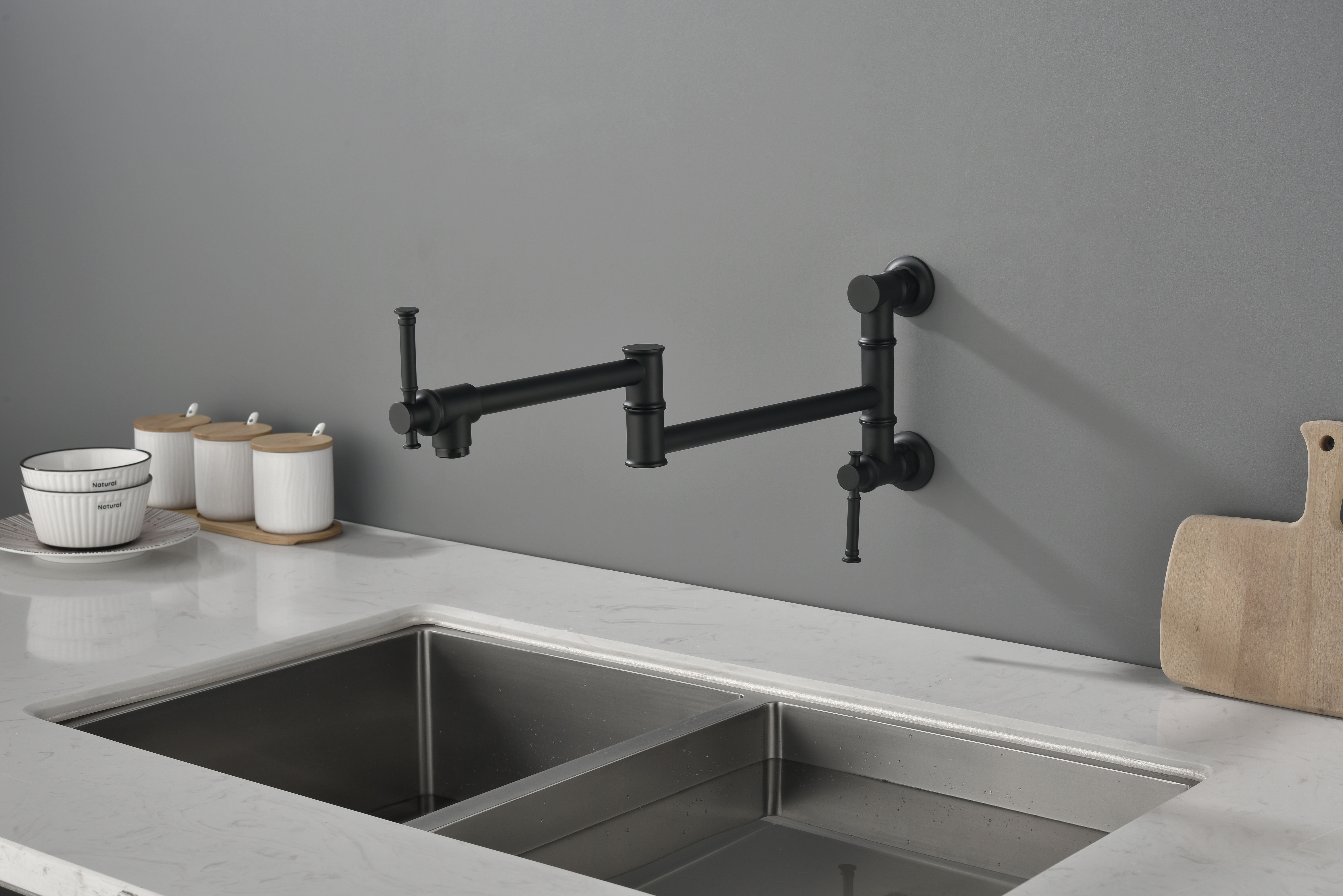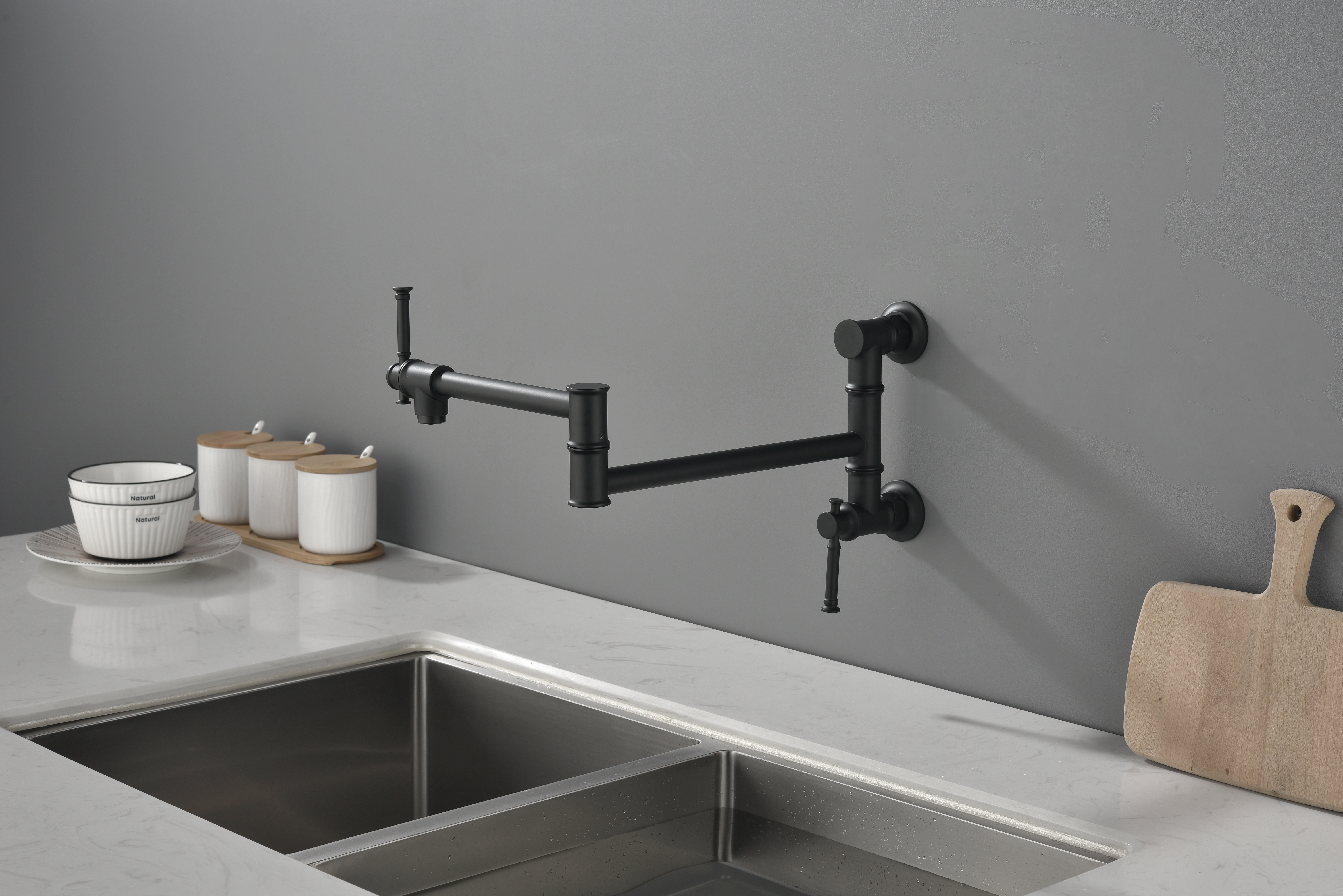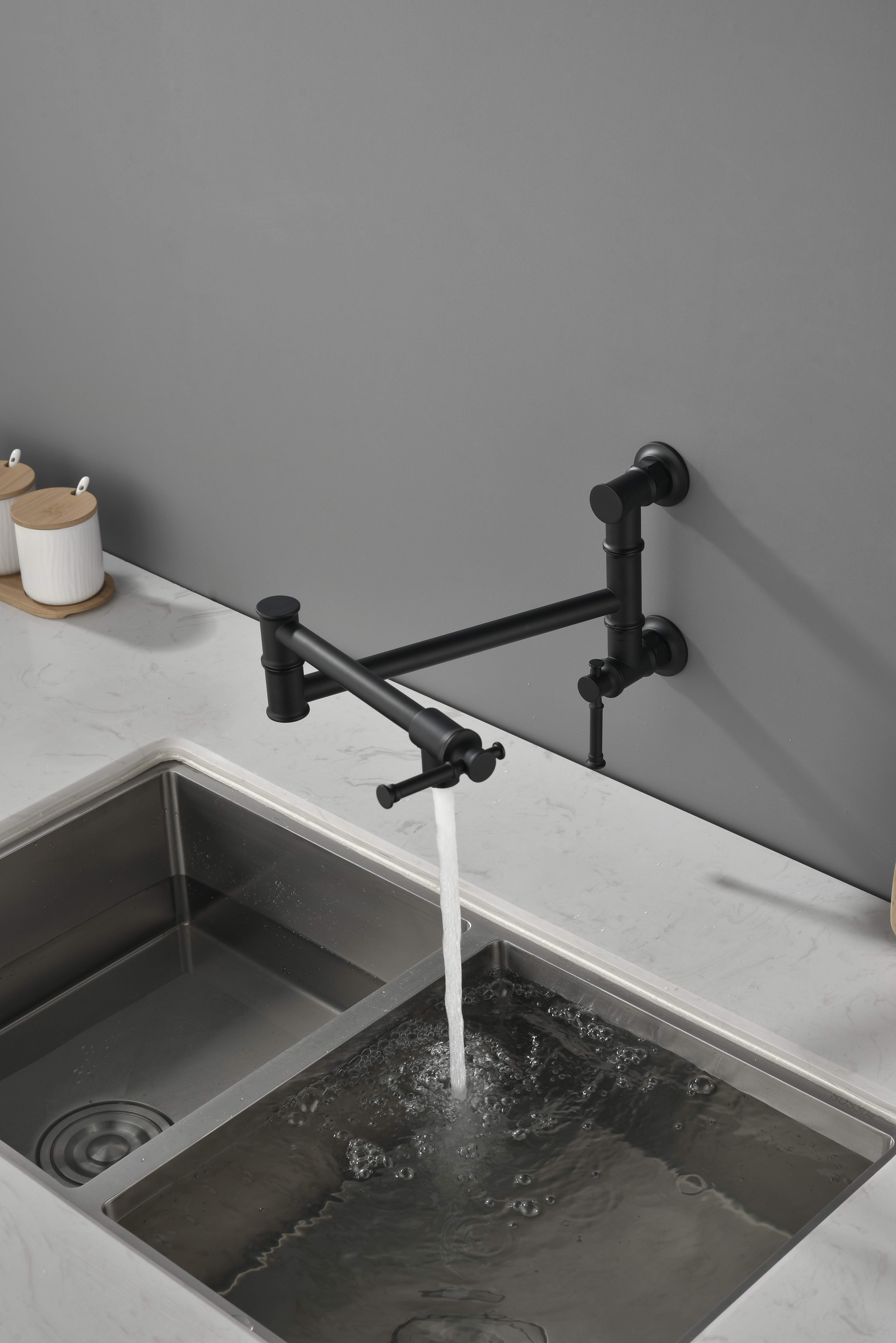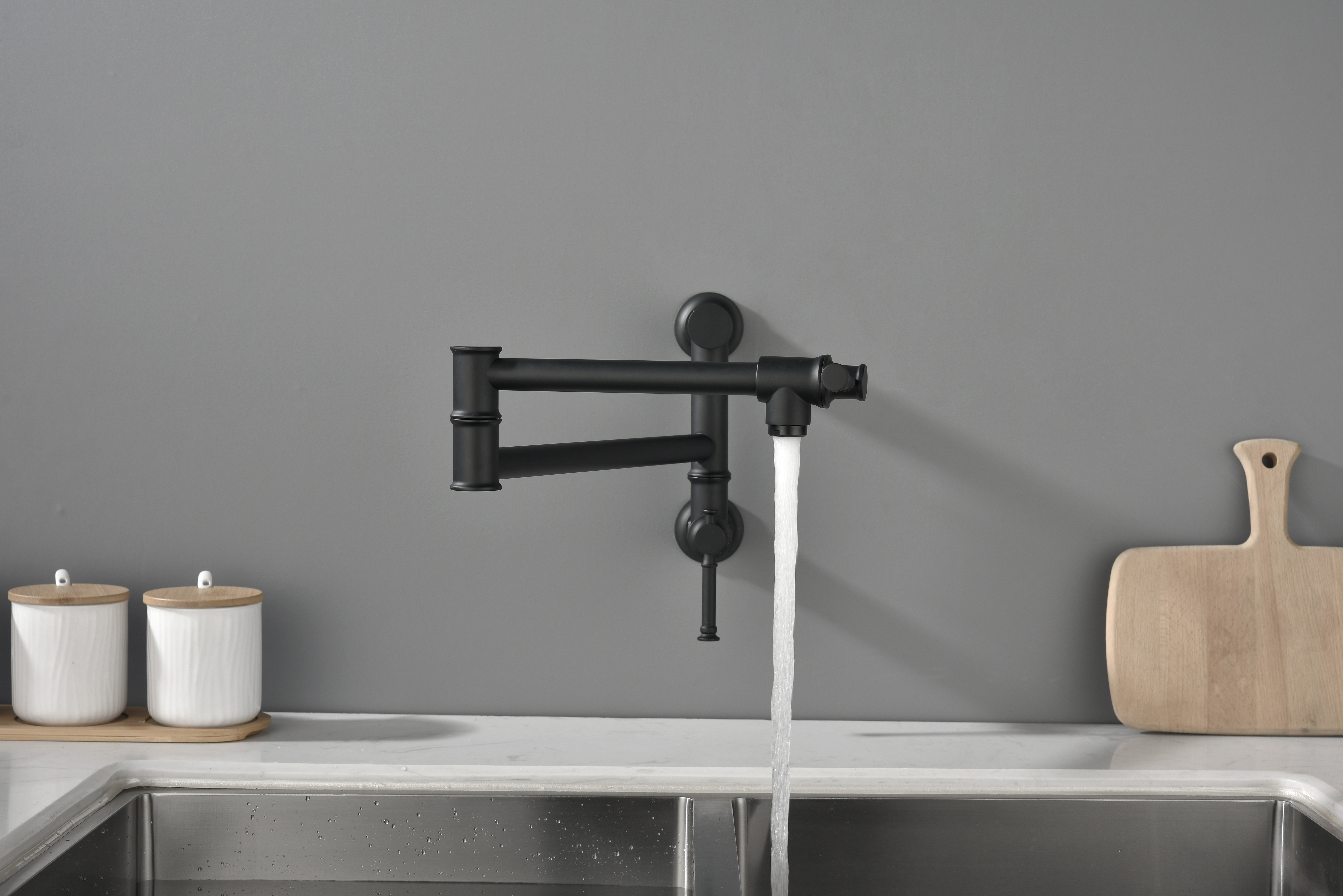 W2287 Wall mounted Pot Filler Faucet, Modern Brass Pot Filler Two-Attachment Wall Mount Folding Kitchen Pot Filler Swing Arm. Works well as accent or supplemental wall lighting for hallways, bedrooms, bathrooms, and other interior spaces. Material: brass. Product dimensions and weight: length 15.5, width 12, height 2, weight 5.2.